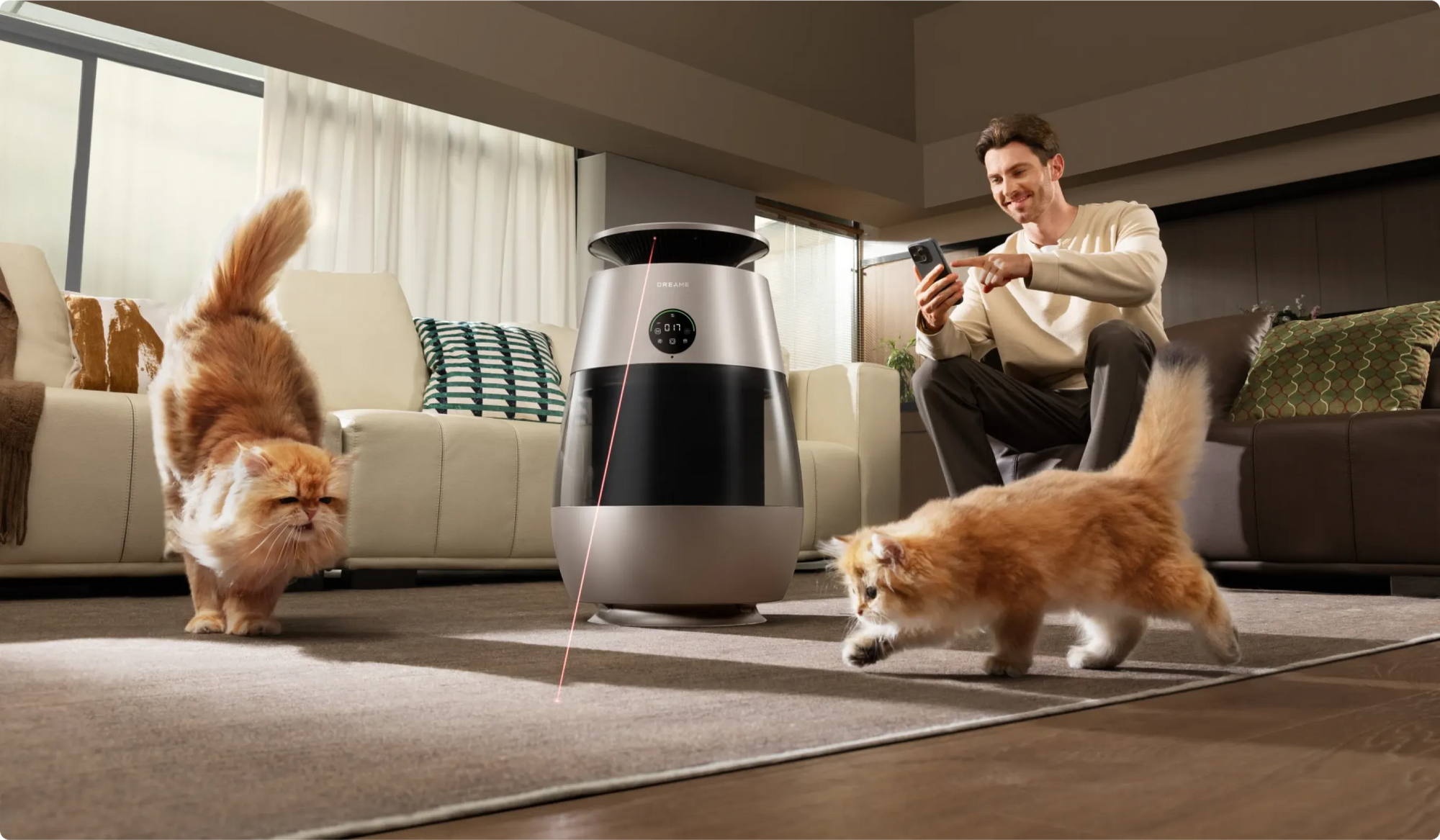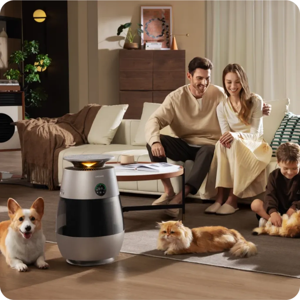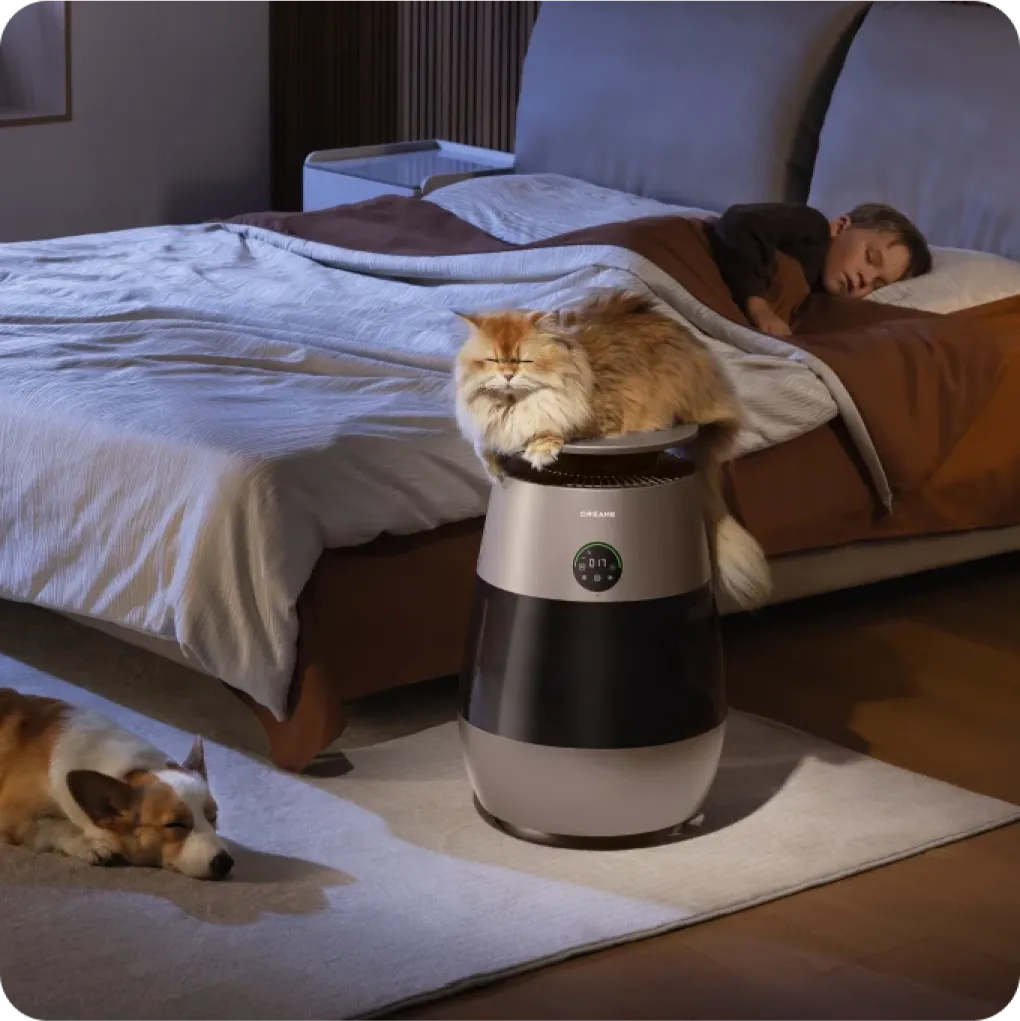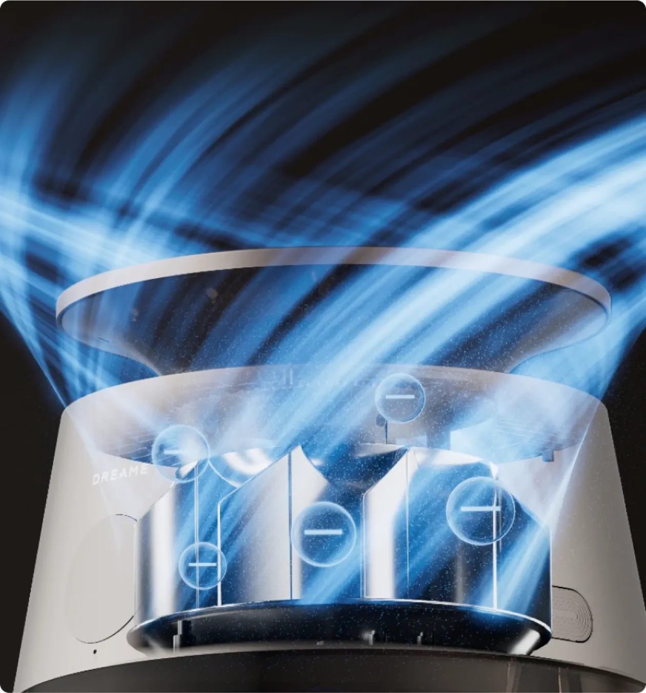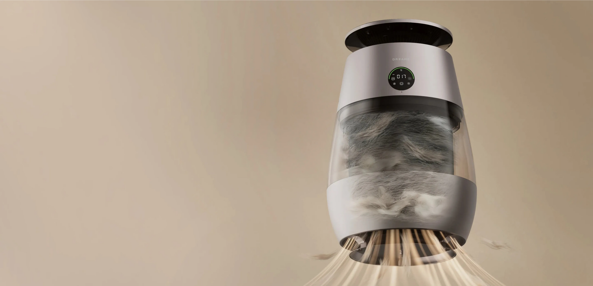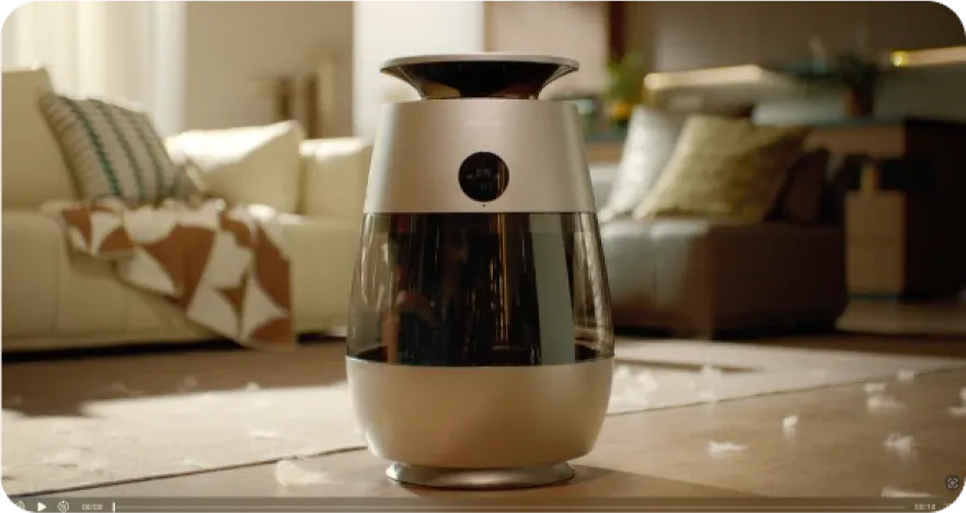Con características de captura del pelo a larga distancia*, recogida automática, limpieza potente y circulación de alta frecuencia, puede atrapar rápidamente el pelo flotante de los gatos con sus enérgicos juegos o el que mudan a diario, para alcanzar un 99,9 % de eliminación eficiente del pelo flotante y las bolas que se forman debajo los muebles y entre los huecos del sofá