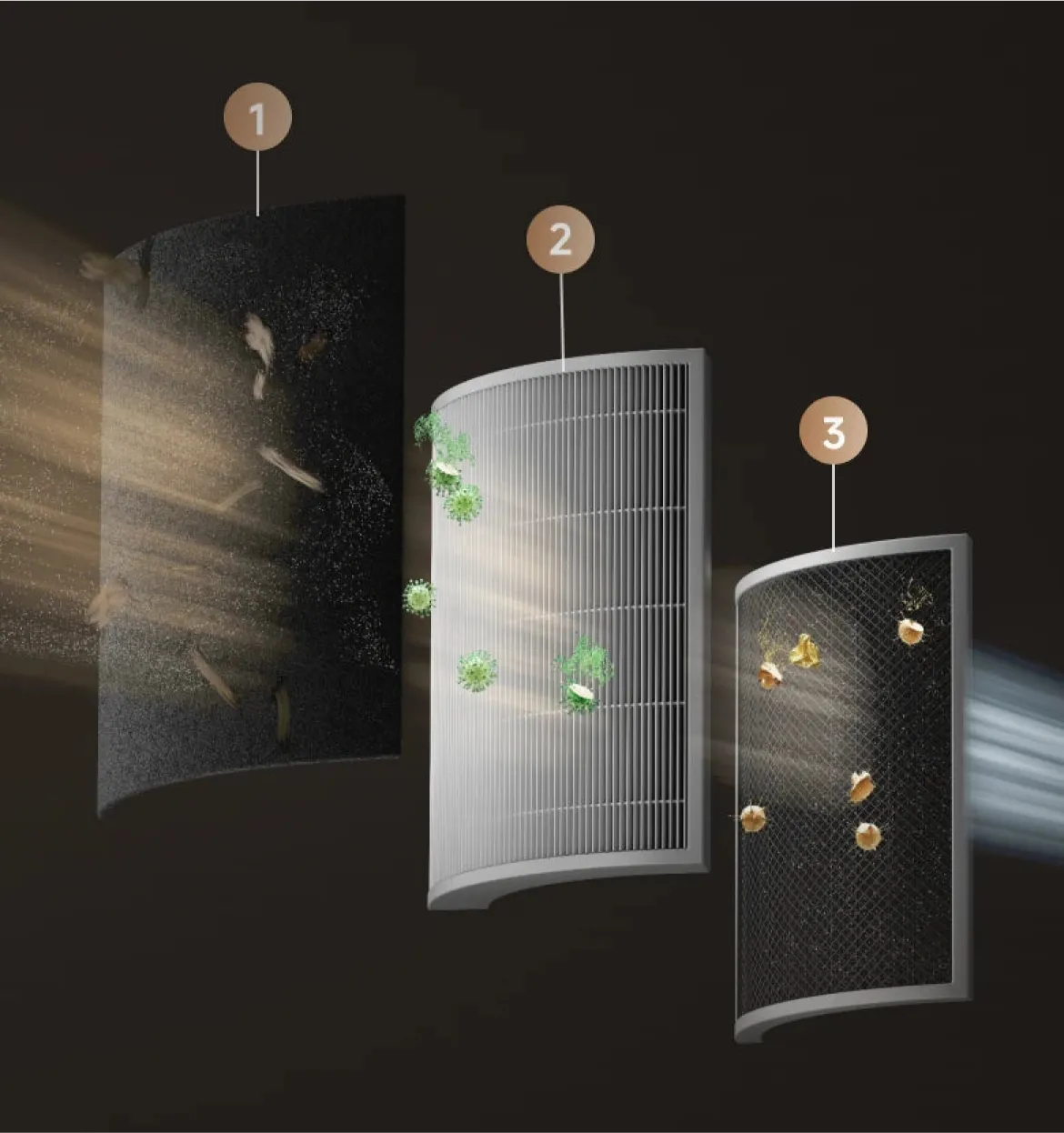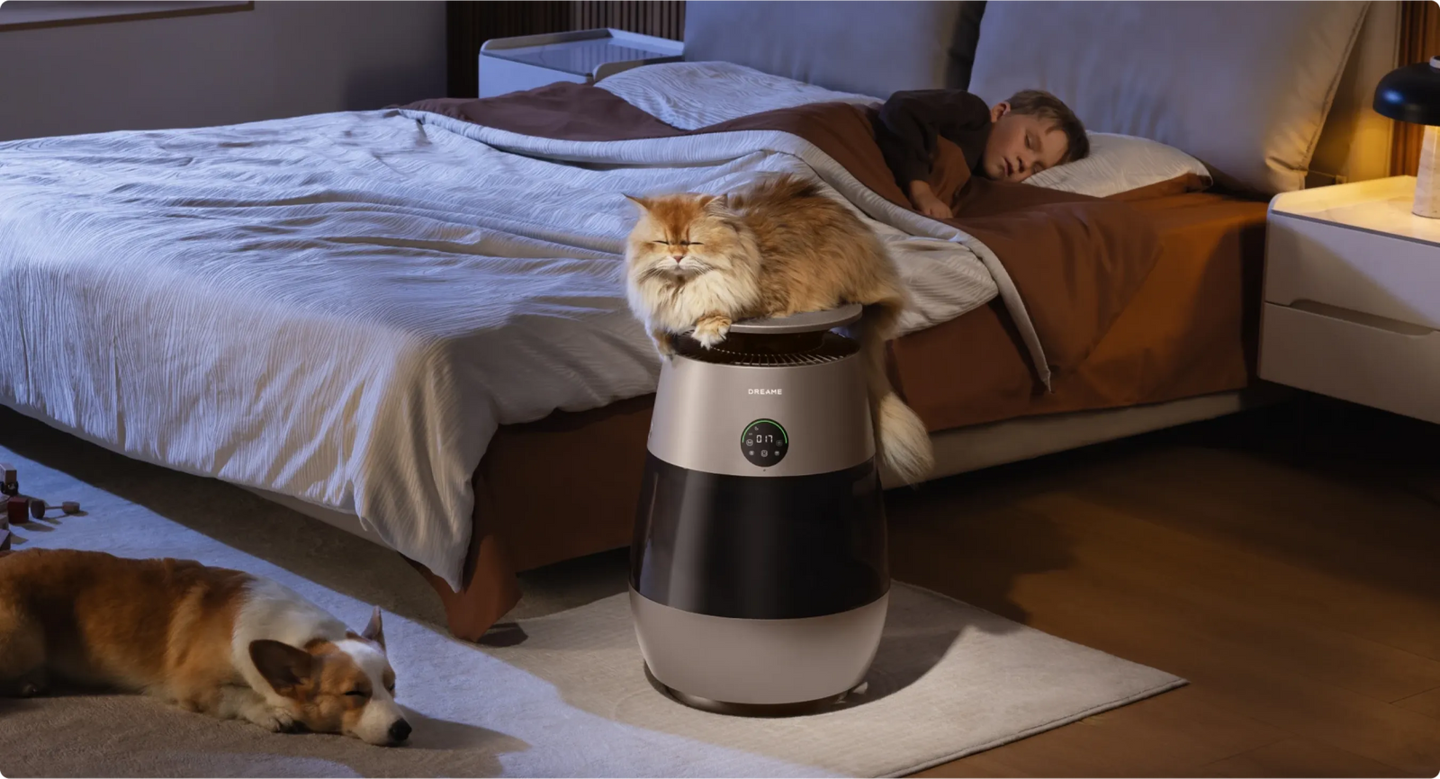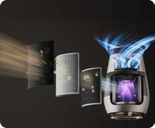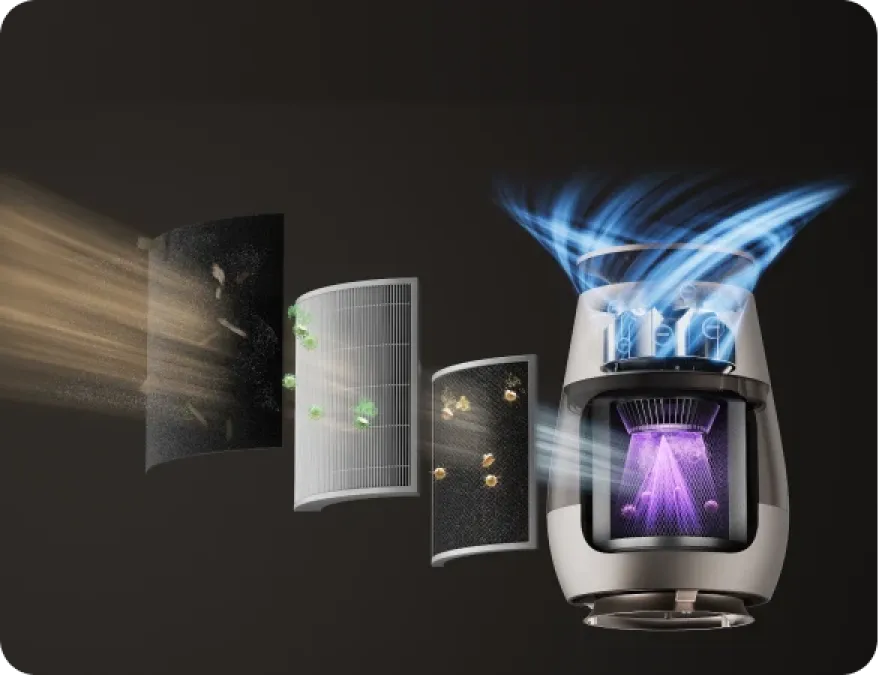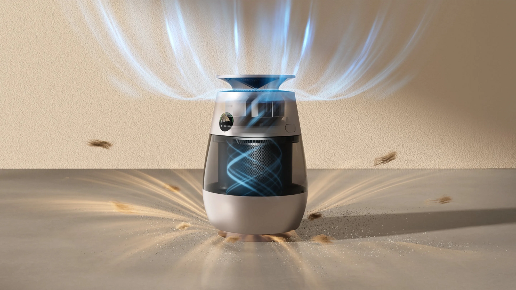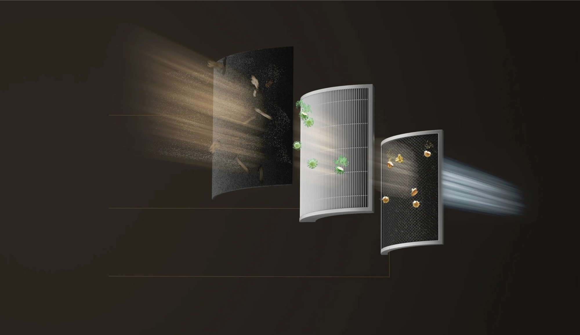 Con características de captura del pelo a larga distancia*, recogida automática, limpieza potente y circulación de alta frecuencia, puede atrapar rápidamente el pelo flotante de los gatos con sus enérgicos juegos o el que mudan a diario, para alcanzar un 99,9 % de eliminación eficiente del pelo flotante y las bolas que se forman debajo los muebles y entre los huecos del sofá
