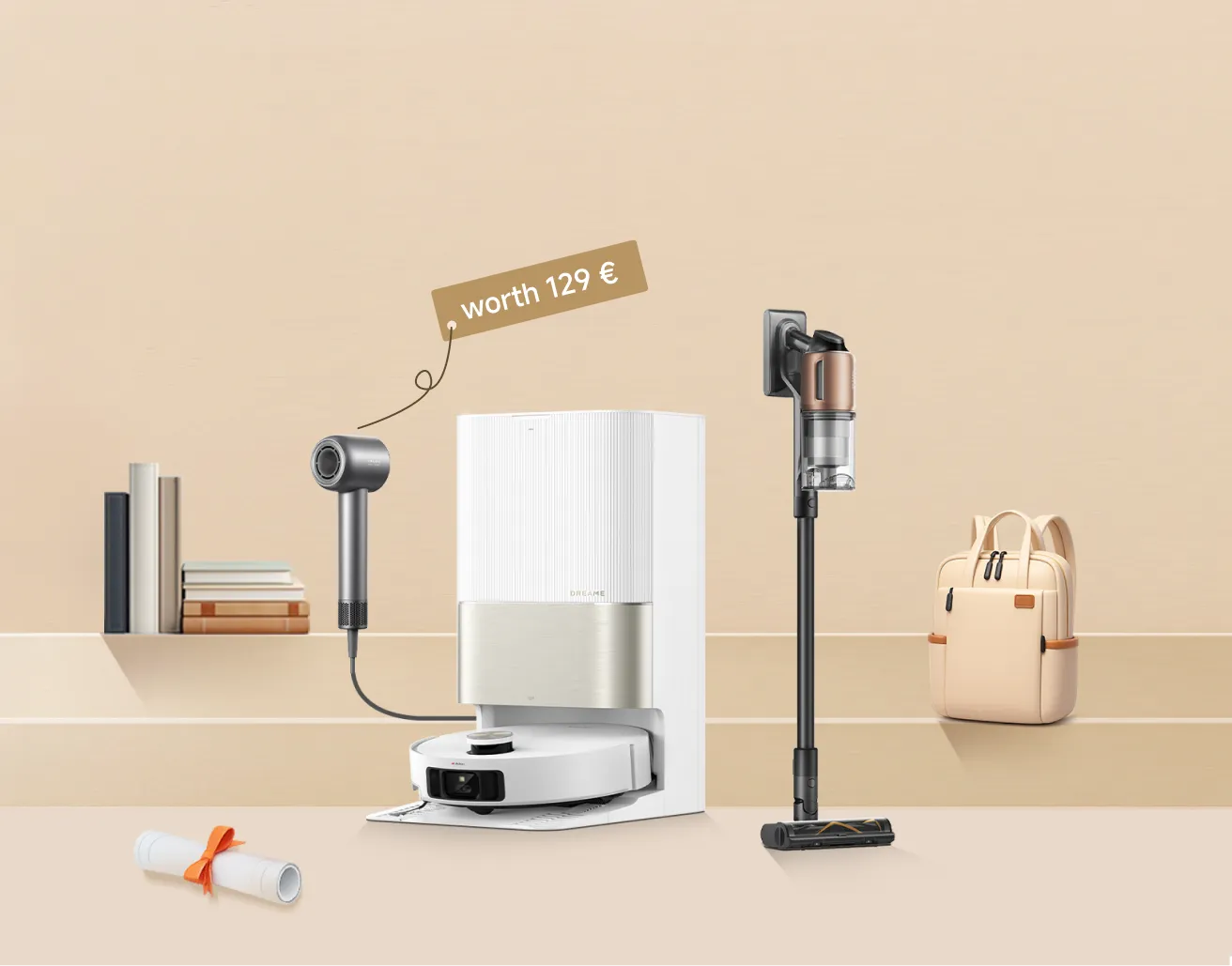 - Elegibilidad: Todos los pedidos de 400 € o más en la tienda oficial de Dreame que incluyan un robot aspirador, un aspirador en seco y húmedo o un aspirador sin cable recibirán el regalo, excepto los modelos de la serie Aqua10, H15S y H15 Pro Foamwash.