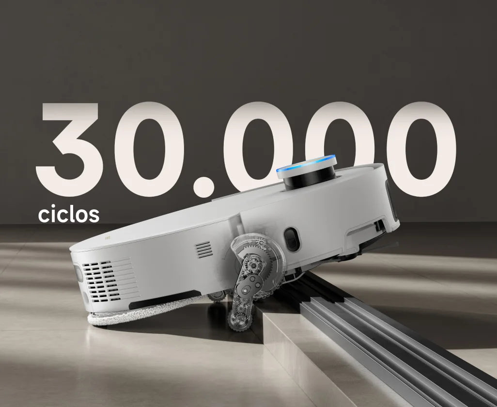 Diseñadas para durar, las patas retráctiles del X50 Ultra Complete ofrecen una capacidad inigualable de 30 000 ciclos*, lo que garantiza una larga vida útil. Probadas a largo plazo, están diseñadas para afrontar tus tareas de limpieza diarias. Además, incluye con un servicio de garantía gratuito* que te proporciona una tranquilidad adicional.