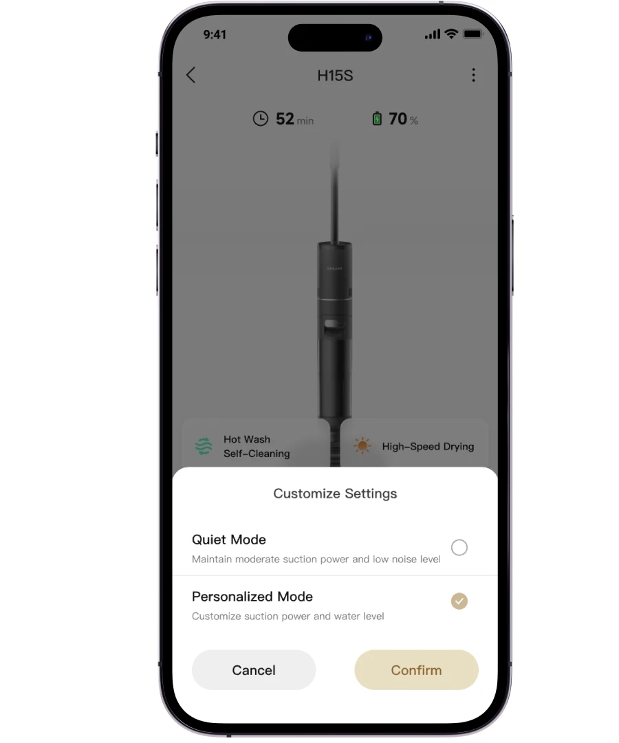 Gracias a su potente pack de baterías 6 x 4000 mAh, el H15S te permite limpiar sin interrupción todo tu espacio con una sola carga.