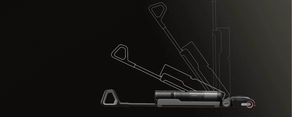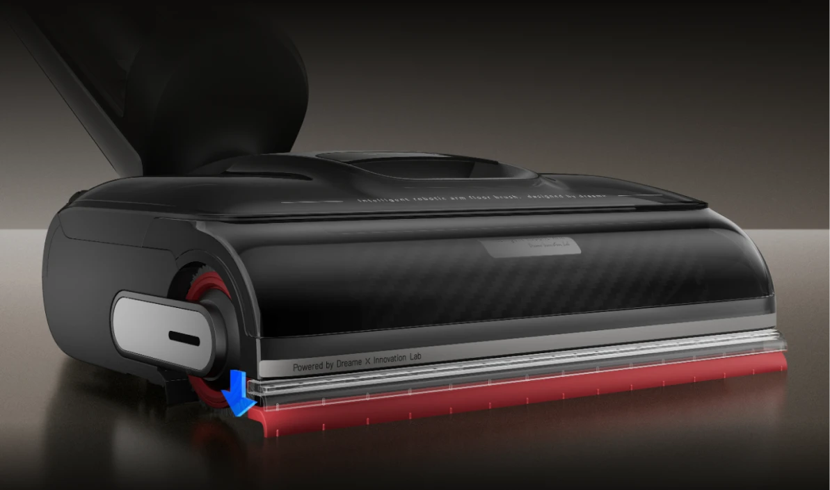 Cuando tiras hacia atrás, el brazo robótico presiona firmemente contra el suelo para eliminar fácilmente la suciedad seca y húmeda que quede.