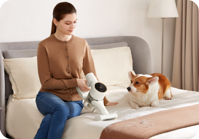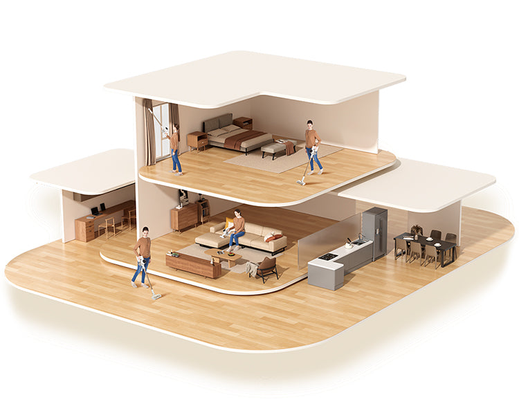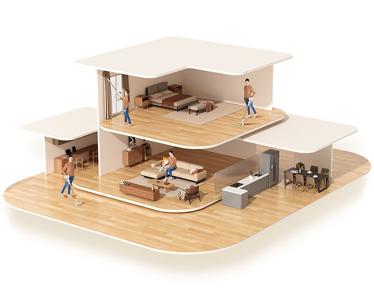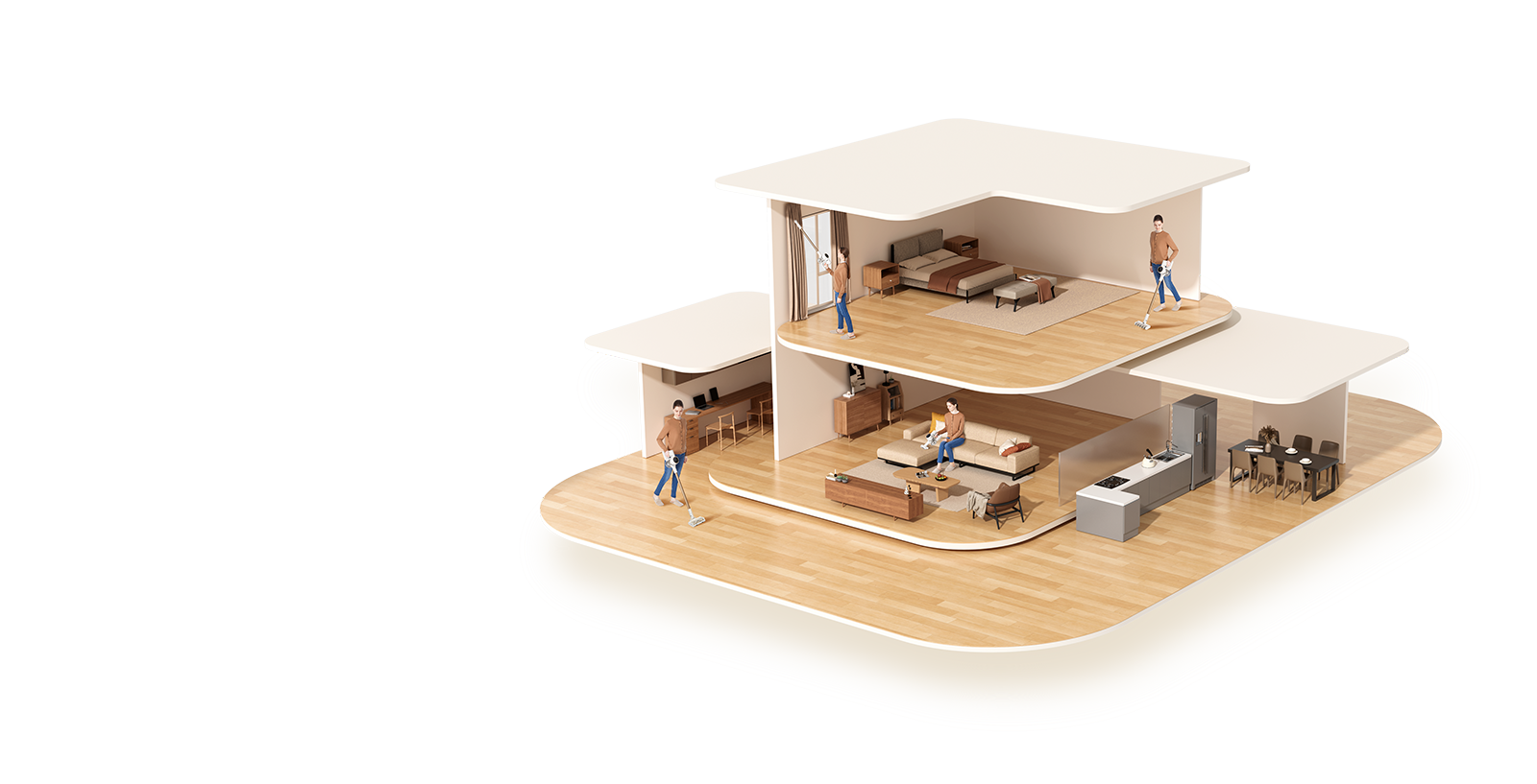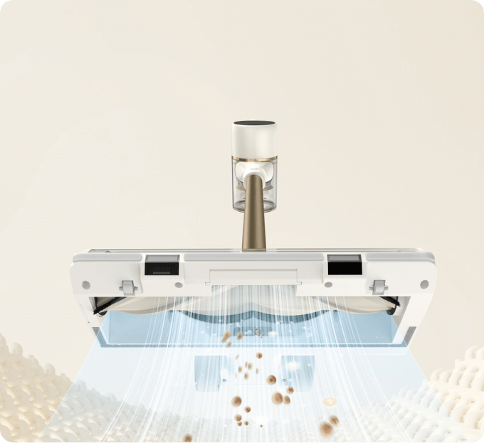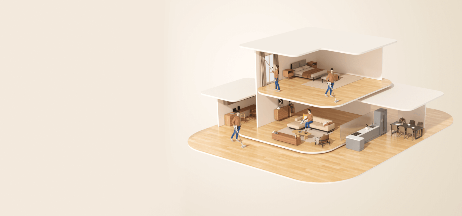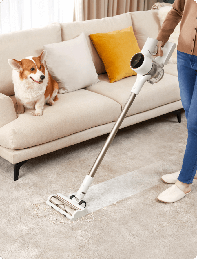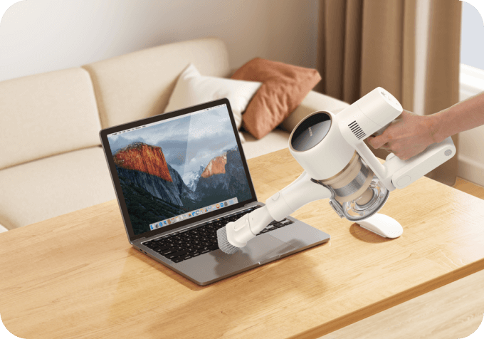 Limpia toda la casa con una potencia de succión de 120 AW gracias a una batería de 7 x 2500 mAh y un motor sin escobillas de alta velocidad de 120 000 rpm, y recoge pelo, suciedad, polvo y restos allá donde se escondan.