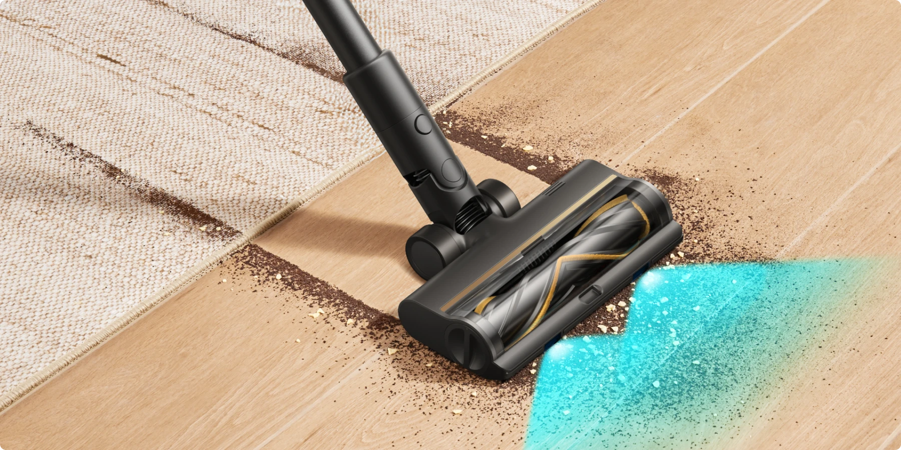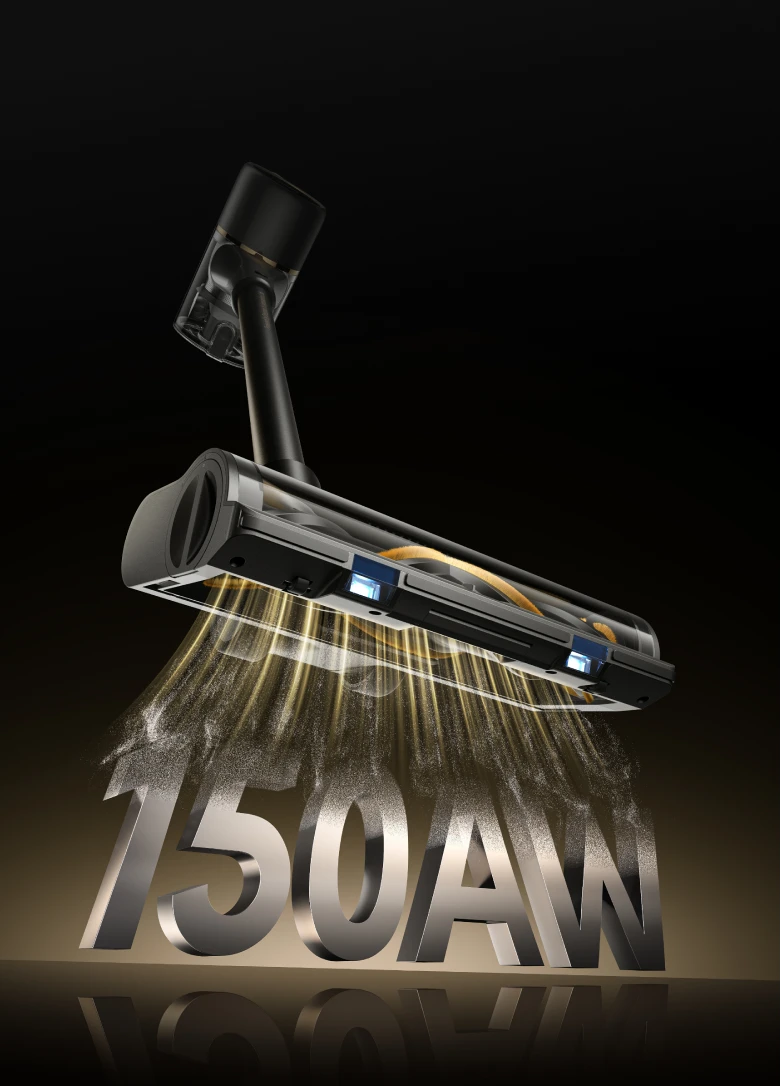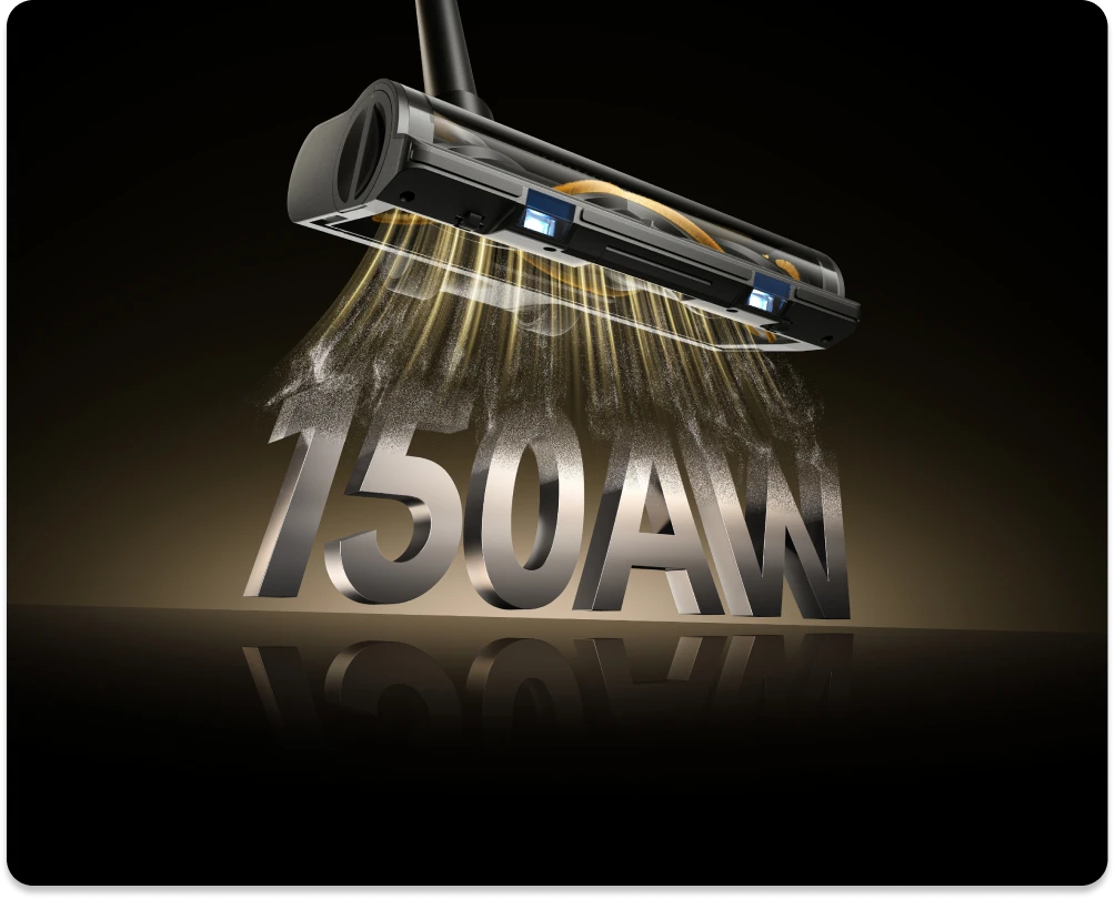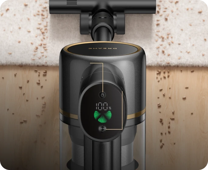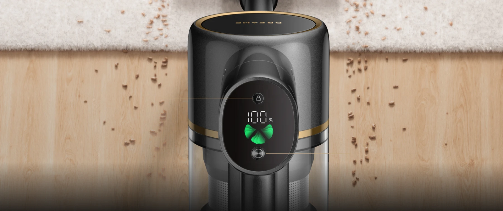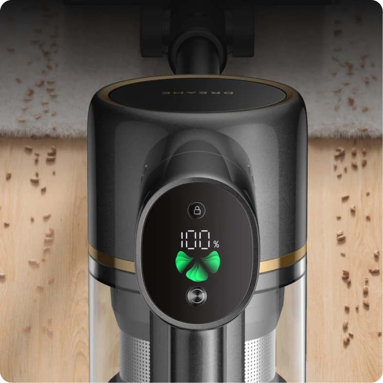 *175 m²: según las pruebas en el laboratorio Dreame, en modo Eco con el cepillo todoterreno, el rendimiento real variará según la distribución específica del hogar.