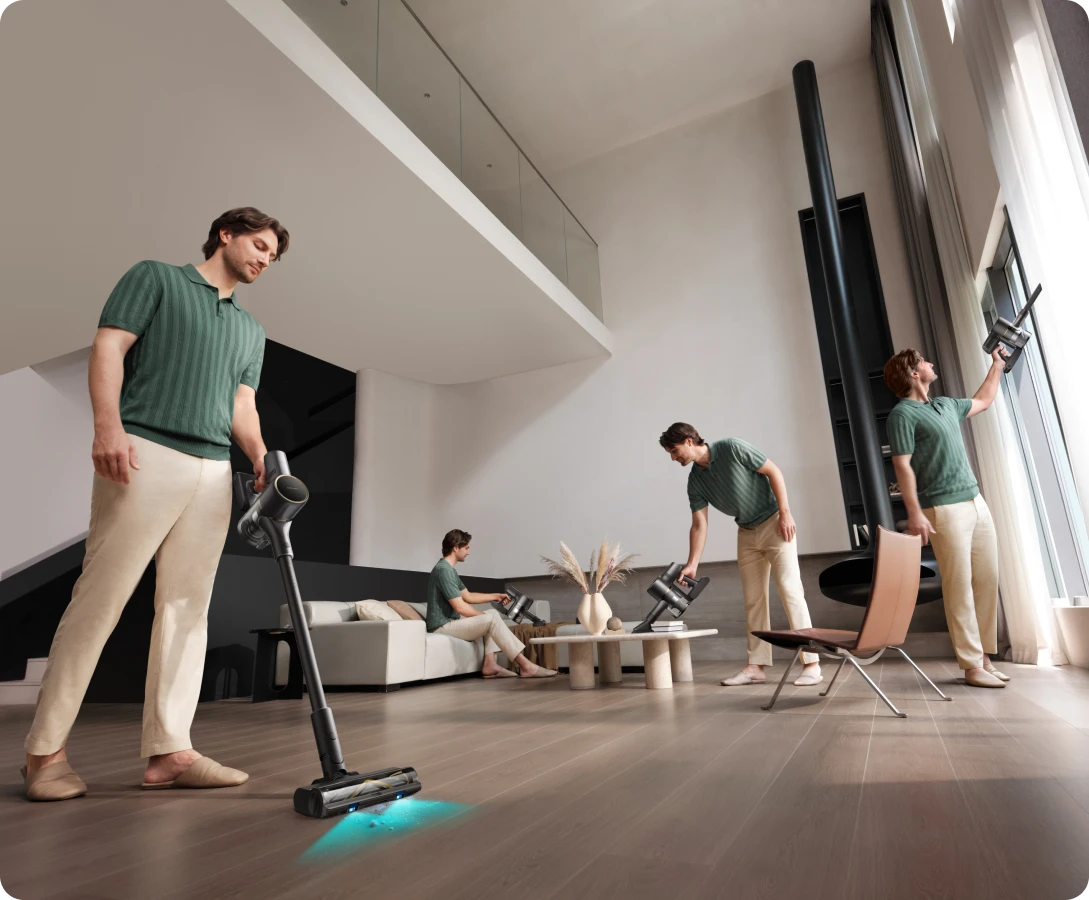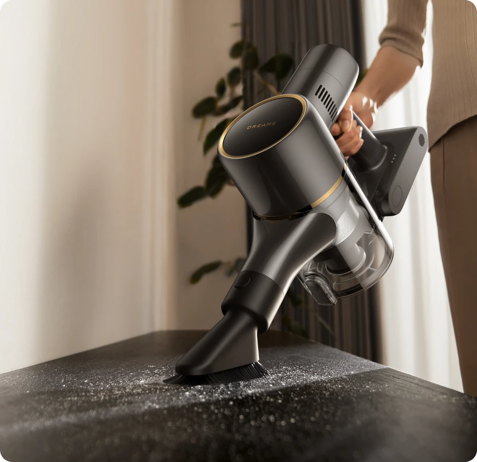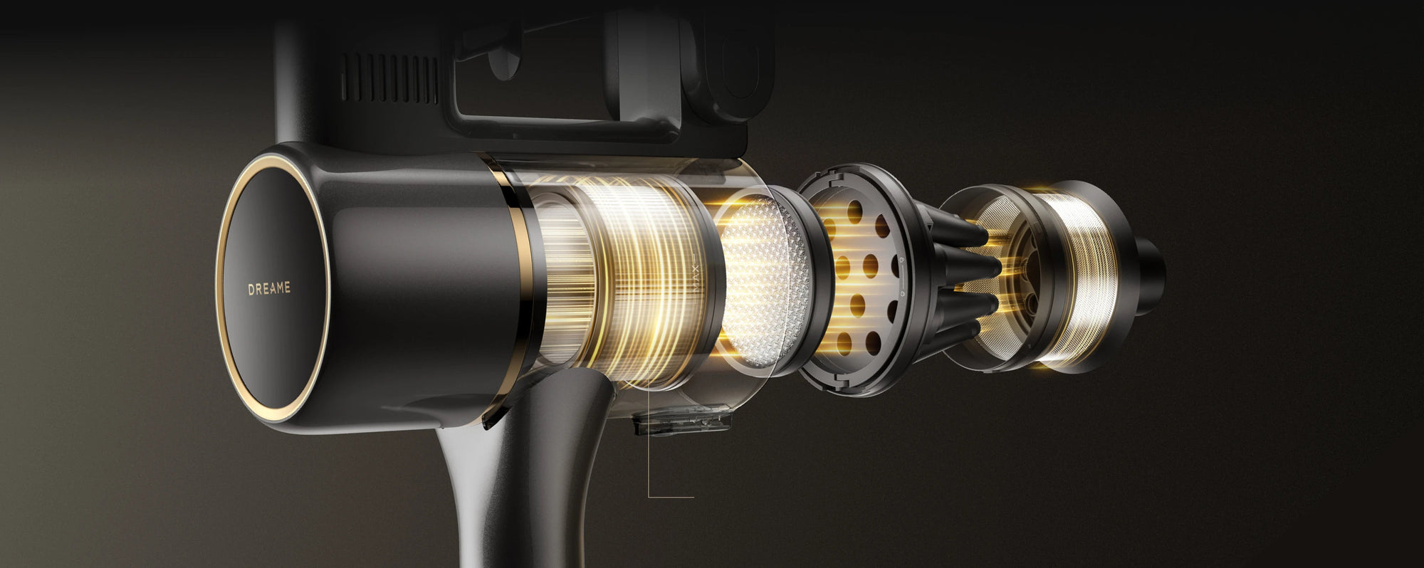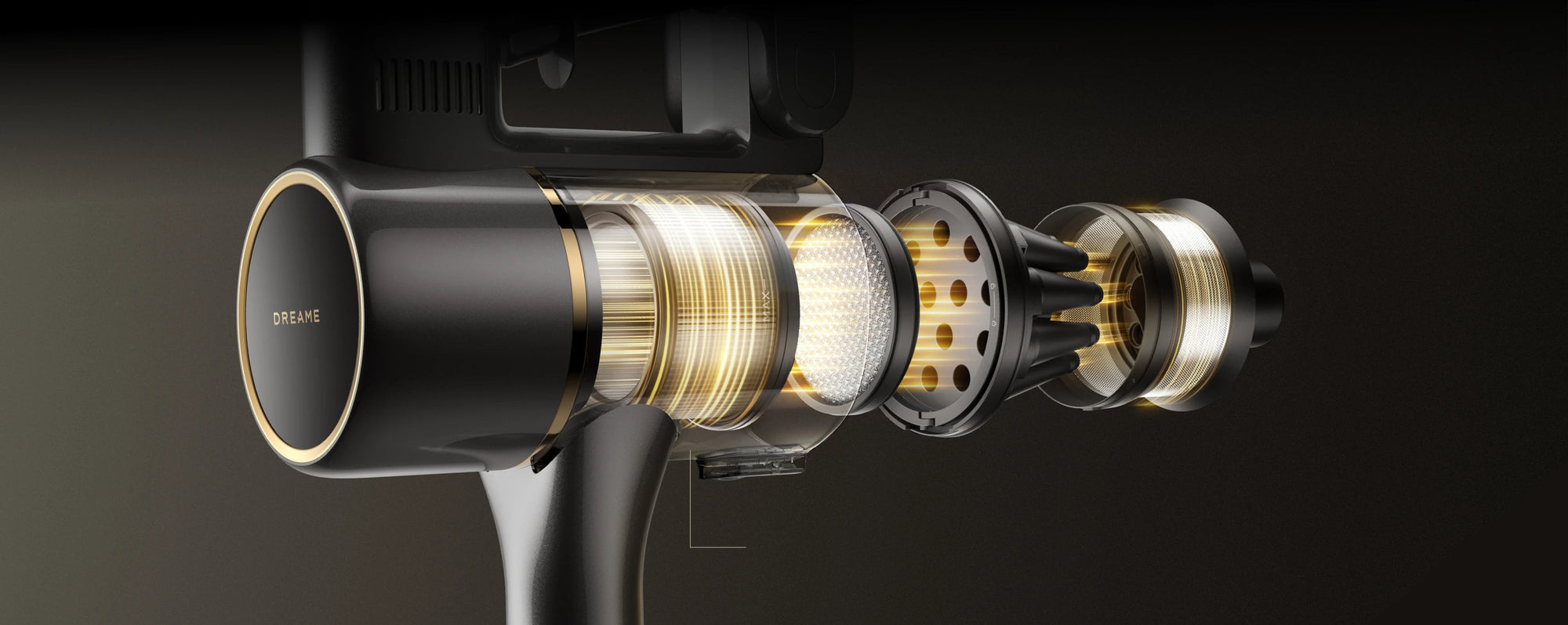 *175 m²: según las pruebas en el laboratorio Dreame, en modo Eco con el cepillo todoterreno, el rendimiento real variará según la distribución específica del hogar.