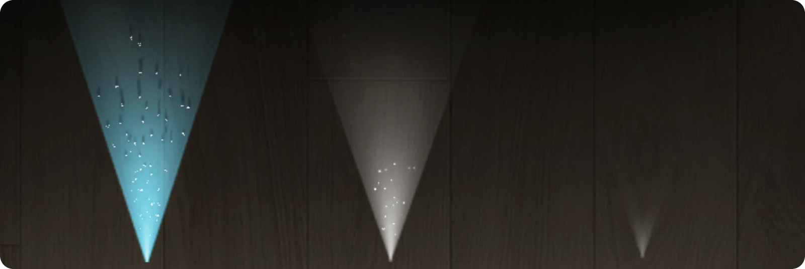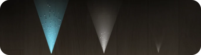 *Visibilidad 16 veces mayor*: según pruebas de laboratorio interno, informe n.º ZM-250813-011. La luz LED CelesTect™ mejora la visibilidad del polvo al ampliar las sombras de polvo hasta 16 veces. Los resultados reales pueden variar según la iluminación y el entorno.