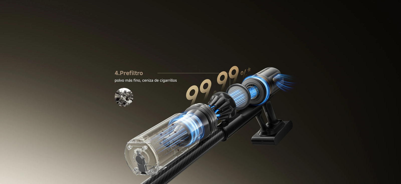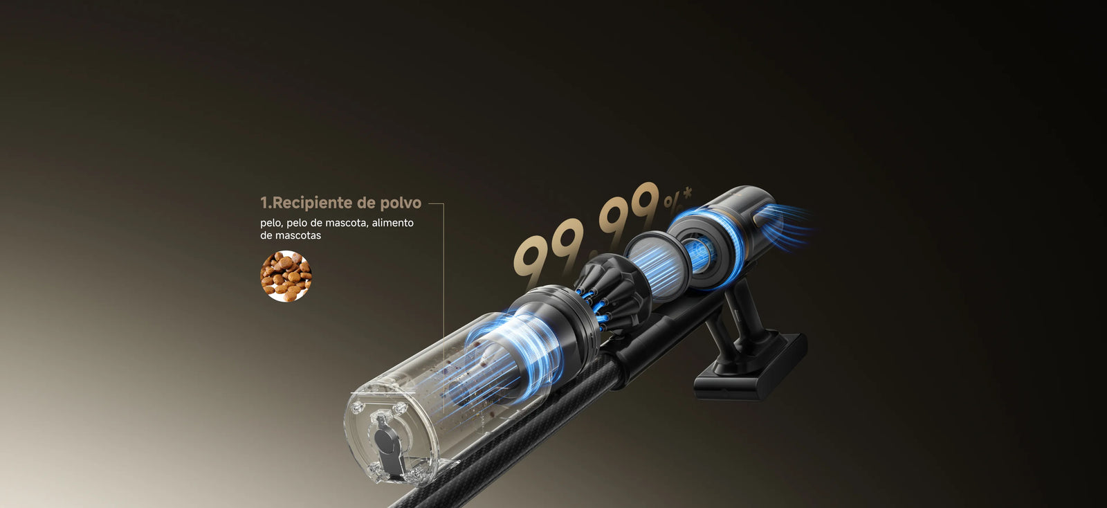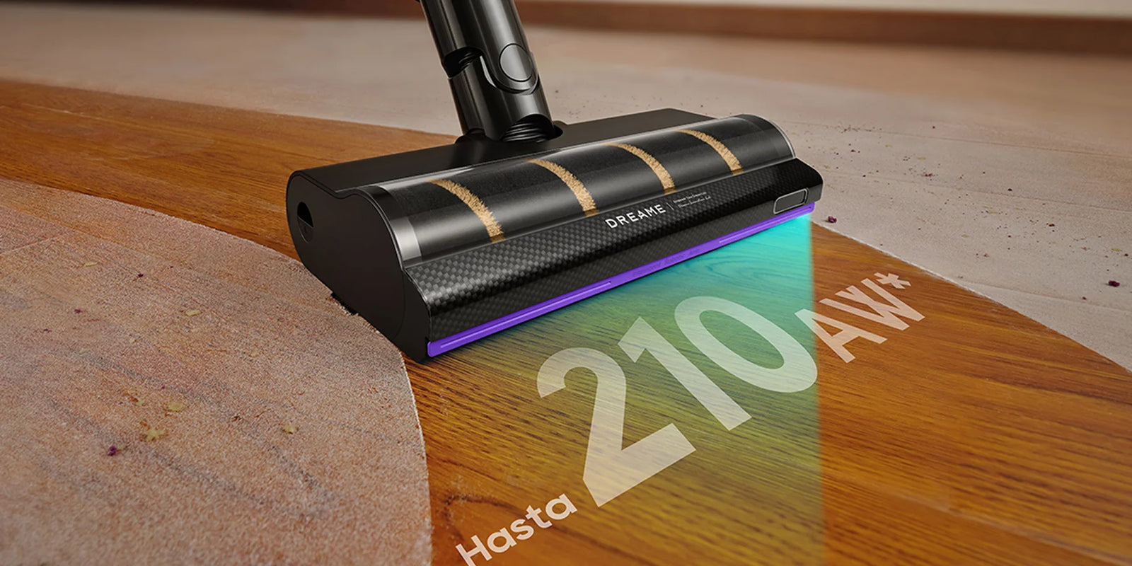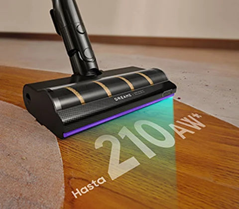 *250 m²: Según las pruebas en el laboratorio Dreame, en modo Eco con el cepillo multisuperficie, el rendimiento real variará según la distribución específica del hogar.