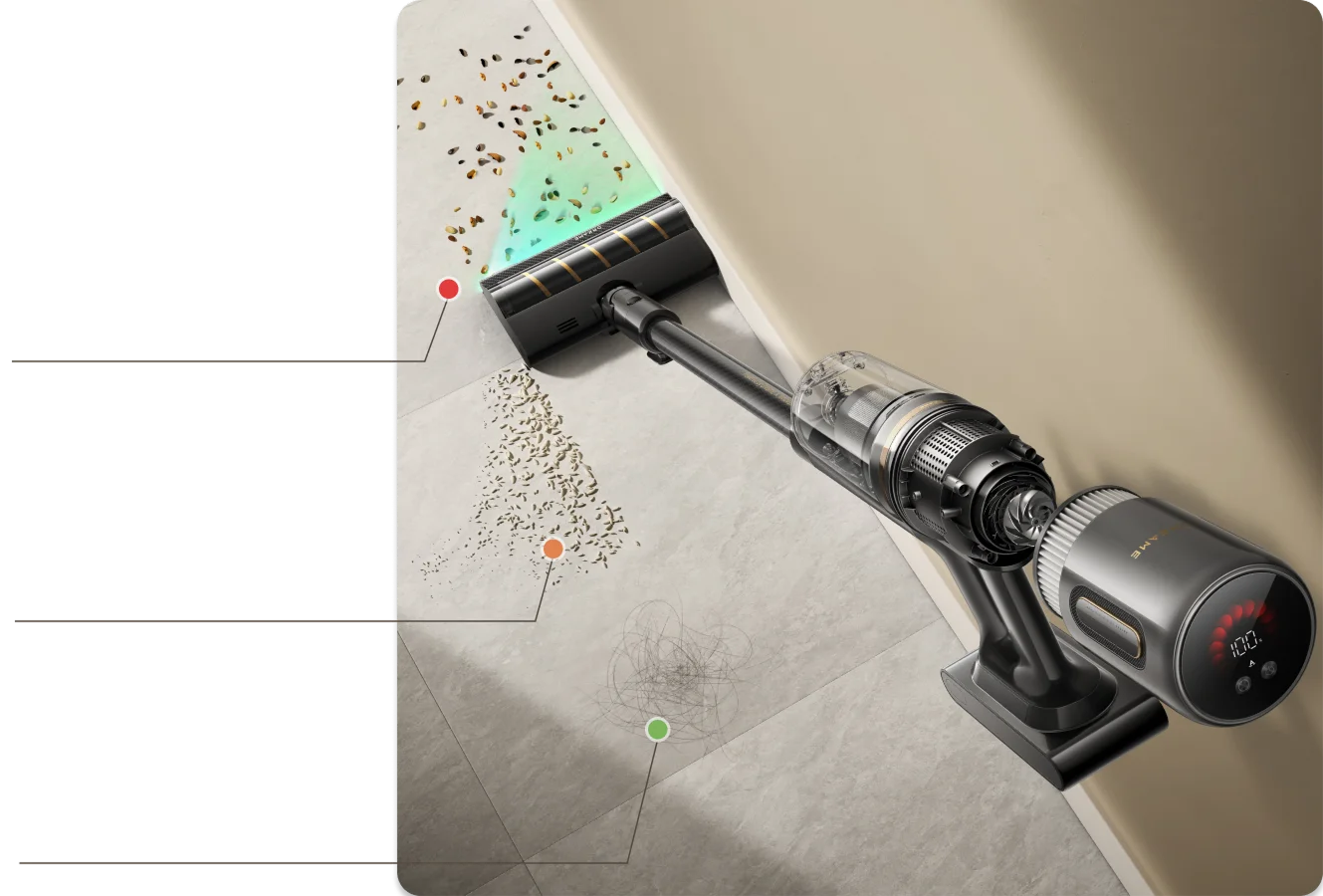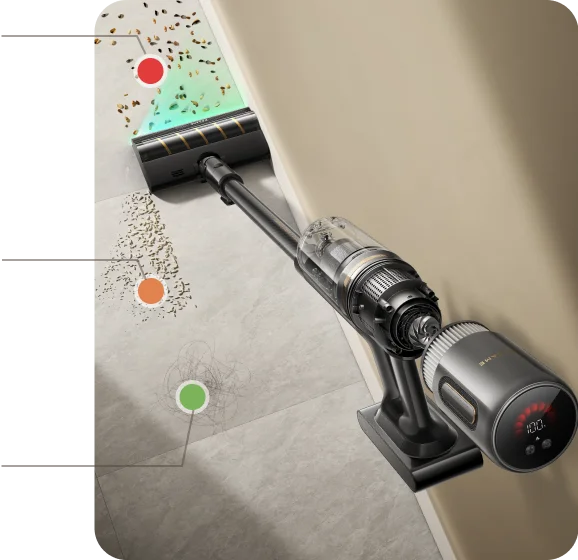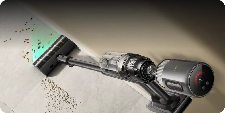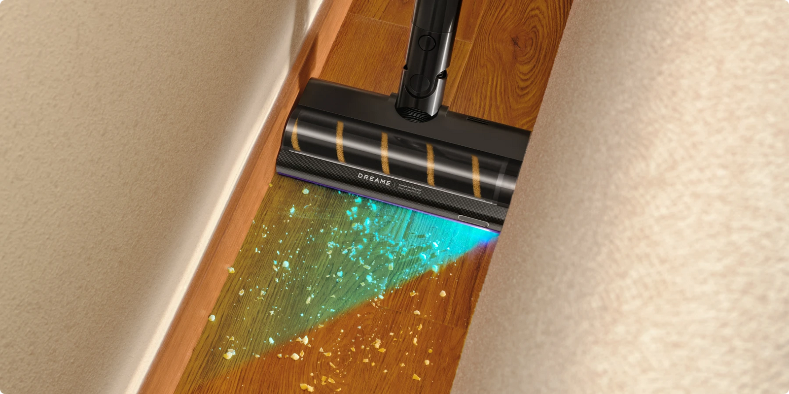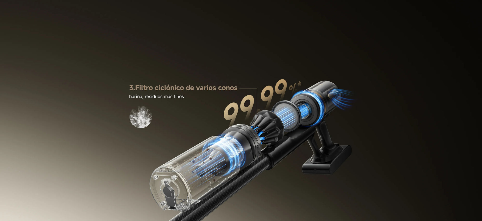 *250 m²: Según las pruebas en el laboratorio Dreame, en modo Eco con el cepillo multisuperficie, el rendimiento real variará según la distribución específica del hogar.