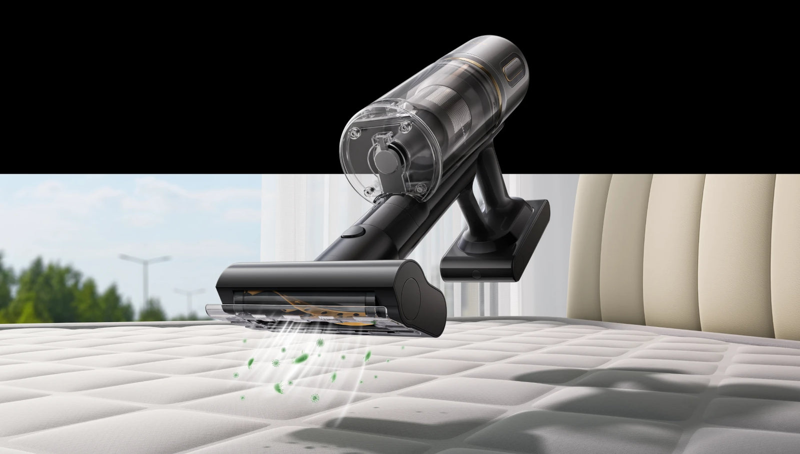 Elimina hasta el 100 % de ácaros de la ropa de cama con el minicepillo motorizado para conseguir un sueño más saludable, libre de alérgenos.*