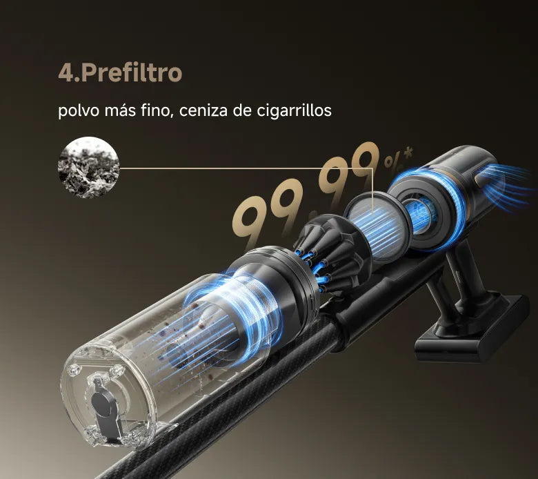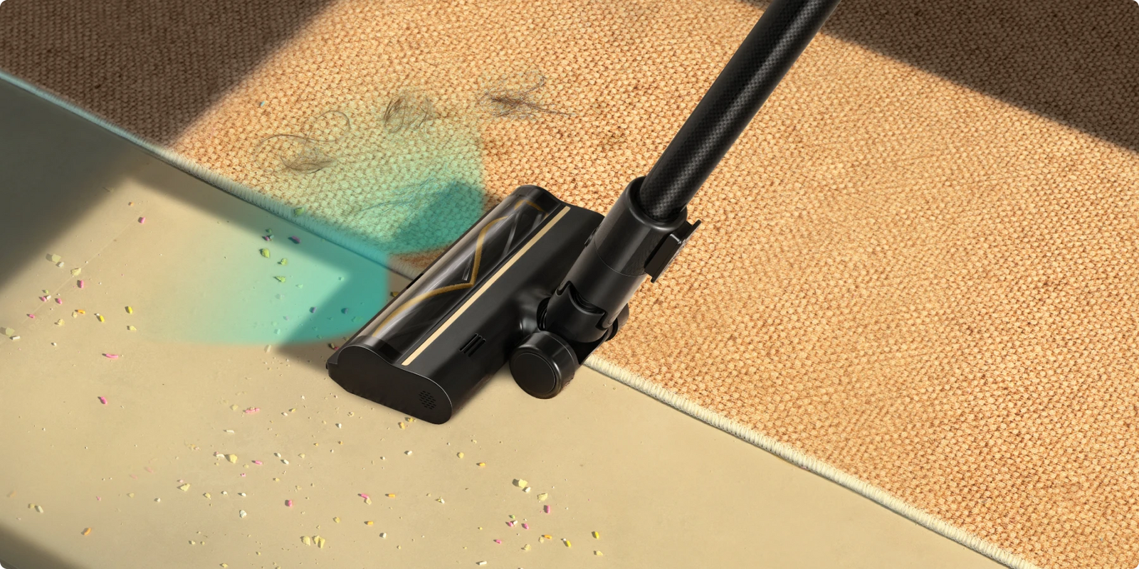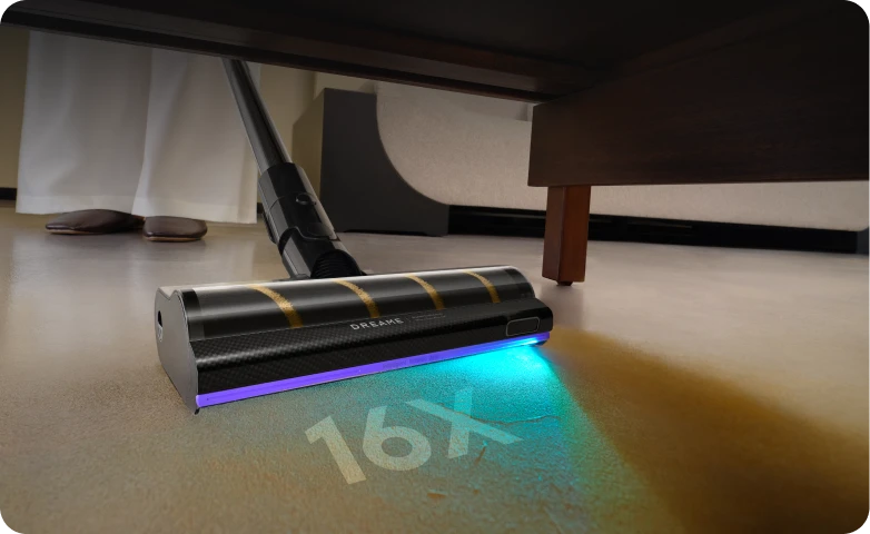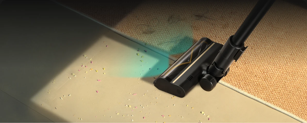*16X Más visible: Según pruebas en laboratorio interno. La luz LED CelesTect™ mejora la visibilidad del polvo al ampliar las sombras del polvo hasta 16 veces. Los resultados reales pueden depender de la iluminación y el ambiente.