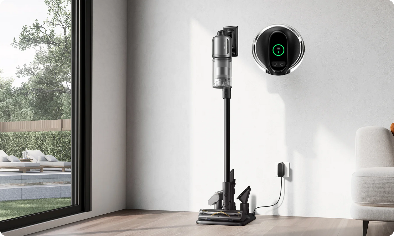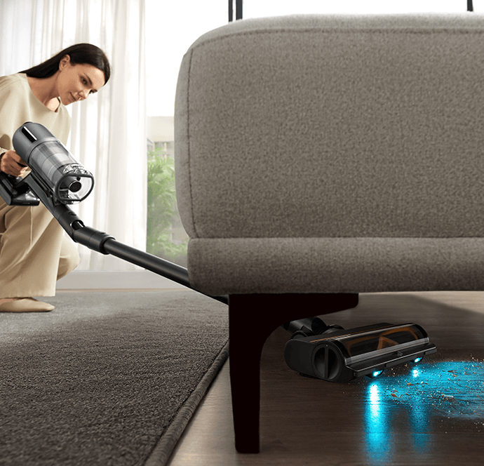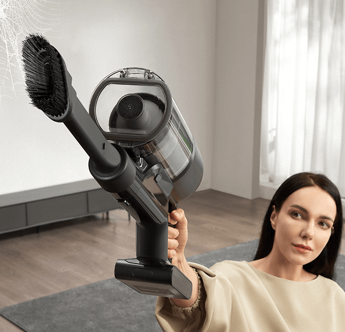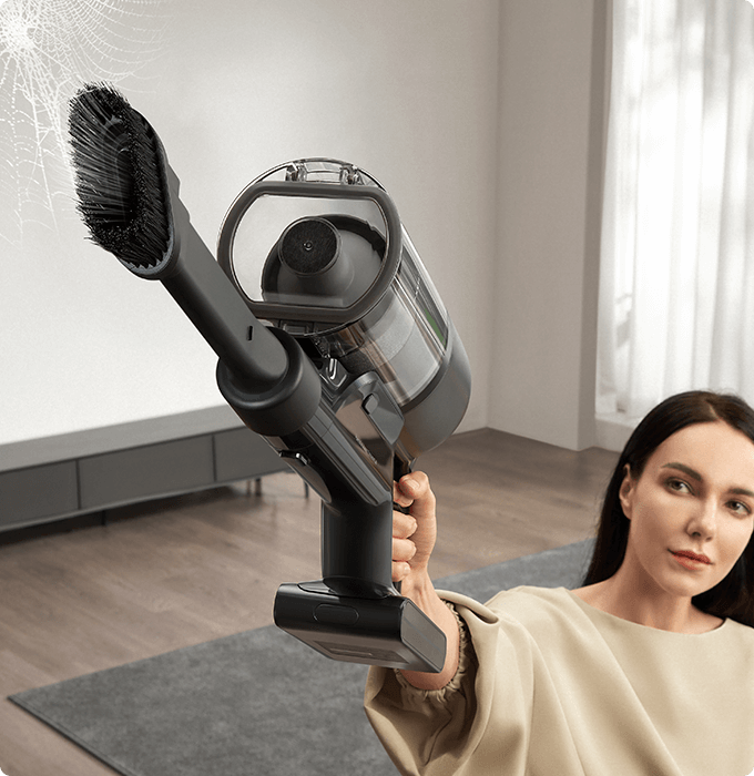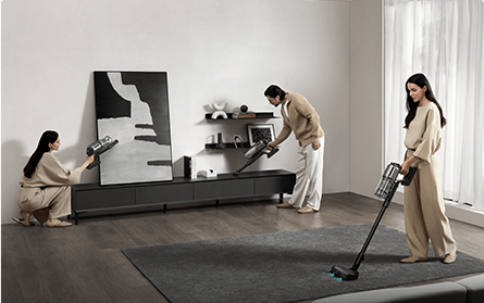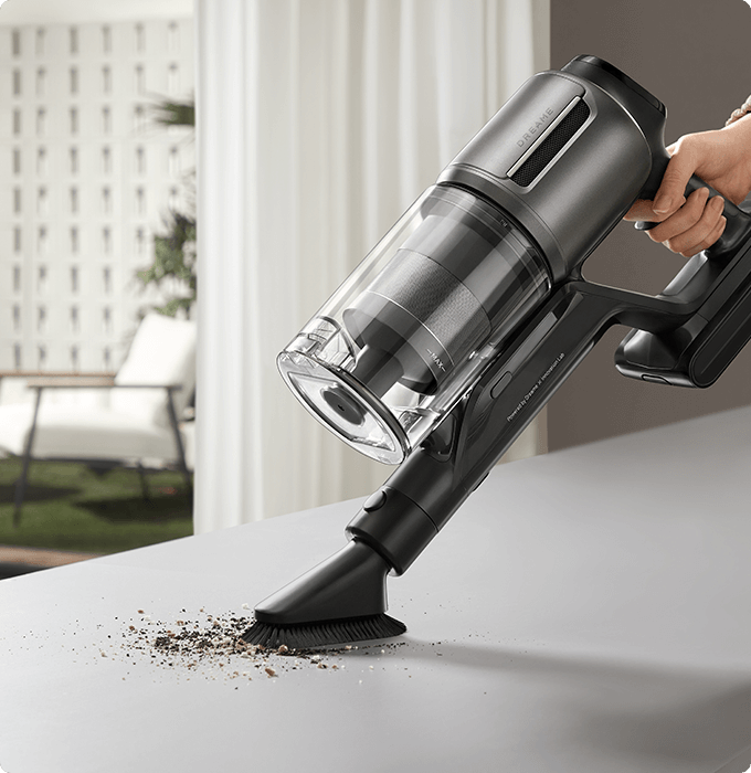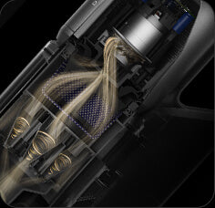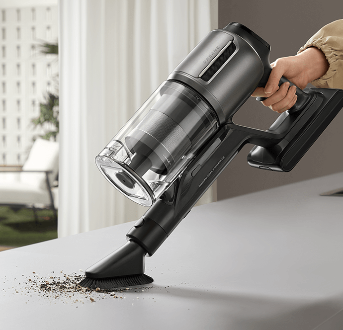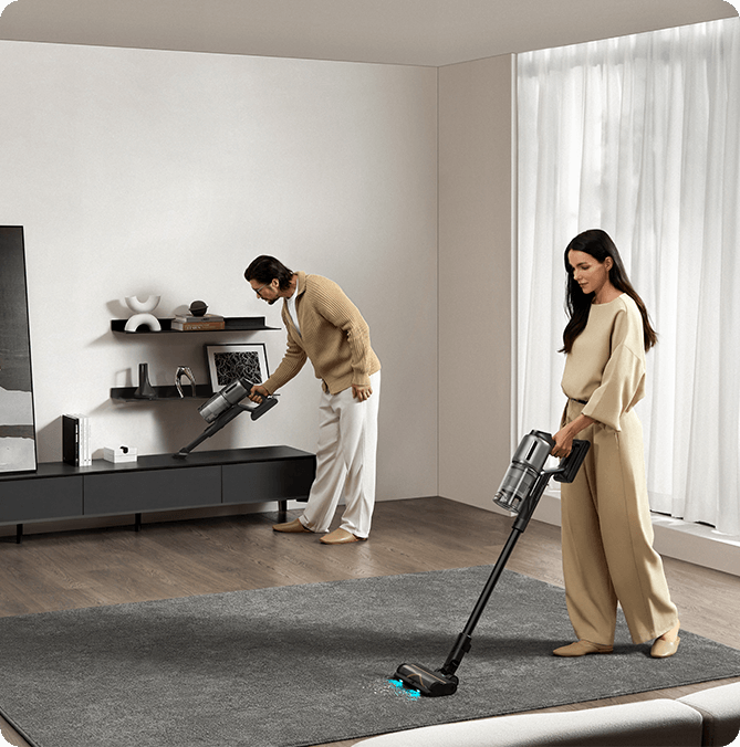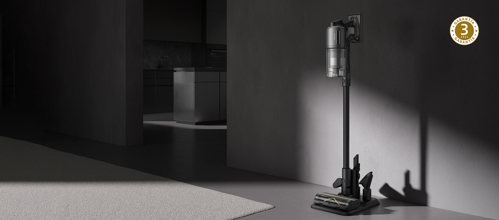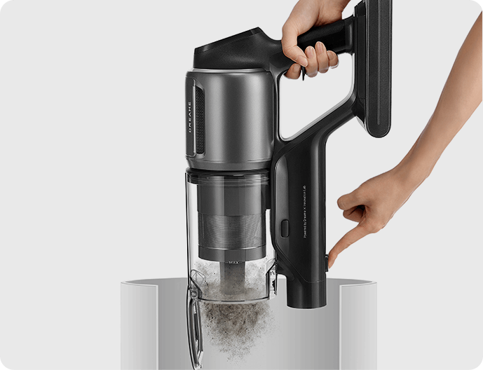 *310 AW, 150 000 r. p. m.: basado en los datos obtenidos del laboratorio de Dreame, las prestaciones reales pueden variar. Hasta mayo de 2024, la potencia de succión de 310 AW representa el valor más alto dentro de la línea de aspiradoras escoba inalámbricas de Dreame.