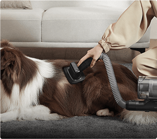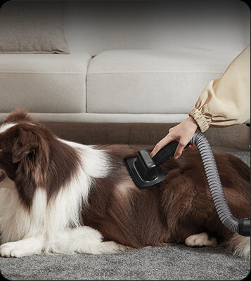 *La herramienta para el pelo suelto de las mascotas se diseñó para perros y gatos con pelaje medio y largo. Antes de usarla, es recomendable acostumbrar a tus mascotas al sonido de la aspiradora en encendida para que se sientan cómodas durante el peinado y la succión del pelo suelto.