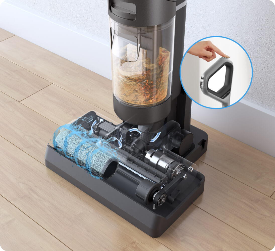 El ciclo de autolimpieza limpia en profundidad el cepillo de rodillo sin que tengas que tocar nada asqueroso. Disfruta de la libertad con la autolimpieza automática.
