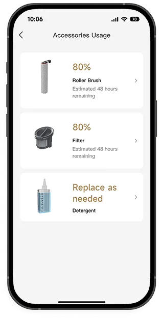 Anticípate al mantenimiento con notificaciones de sustitución de los filtros y limpieza de los cepillos.