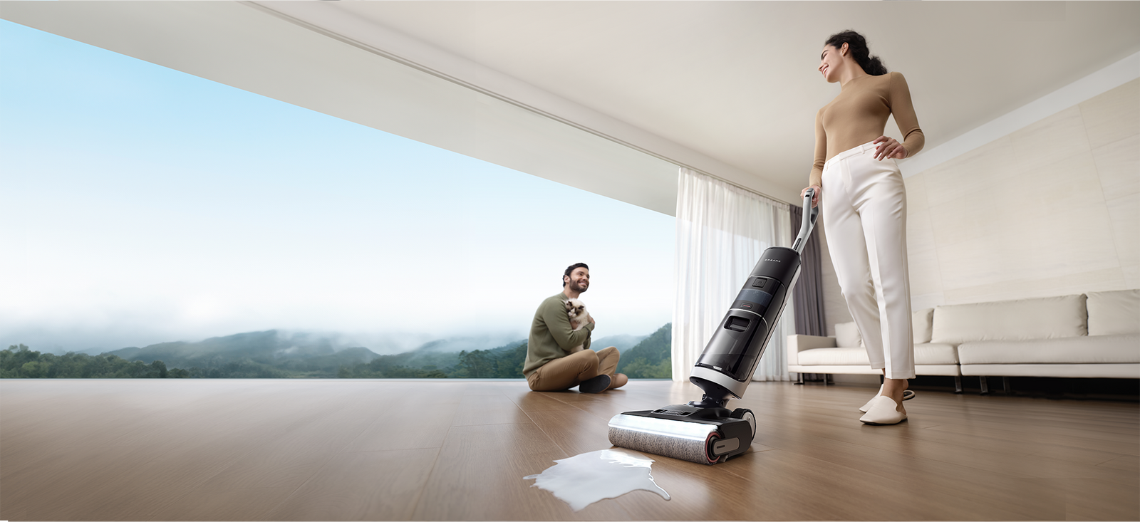 El H14 Pro funciona 40 minutos en el modo limpiador de suelos. La limpieza de hasta 300 m²* sin recargar ofrece una experiencia fluida de principio a fin.¹³