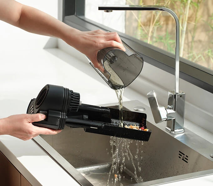 El depósito de filtro fácil de vaciar separa la suciedad sólida de los residuos líquidos, lo que hace que la limpieza final sea rápida y cómoda.