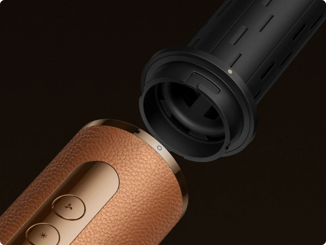 Una combinación perfecta de estética y funcionalidad te permite moldear tu cabello con confianza. El estuche garantiza que lo tengas todo organizado para poder acceder fácilmente, mientras que el asa de cuero granulado permite un agarre seguro y cómodo para un mayor control.