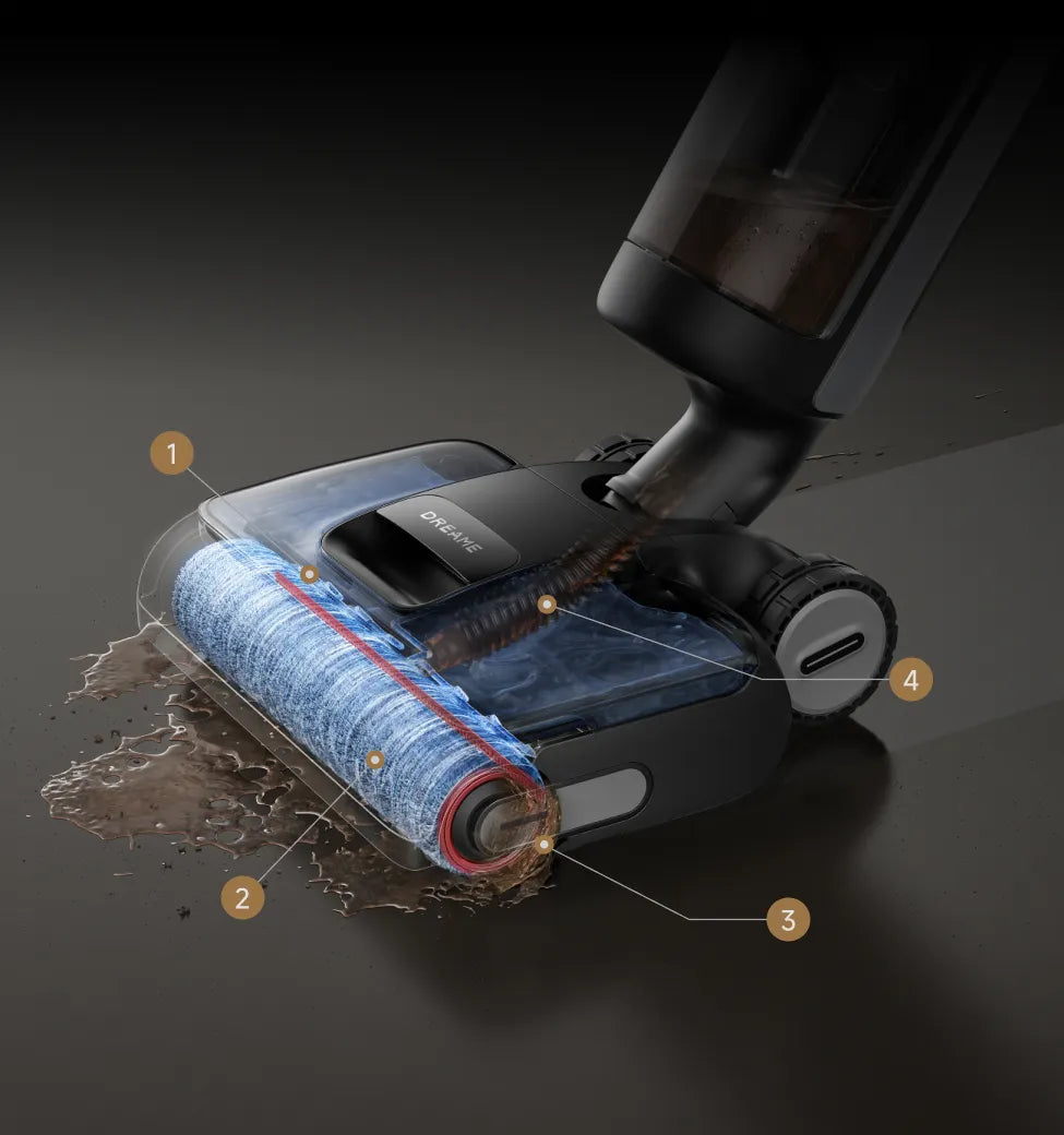 El cepillo de doble rotación del H15 Pro imita el lavado a mano y se combina con el raspador especial para evitar enredos de pelos y mantener limpia la cubierta del cepillo, lo que ahorra tiempo y esfuerzo.