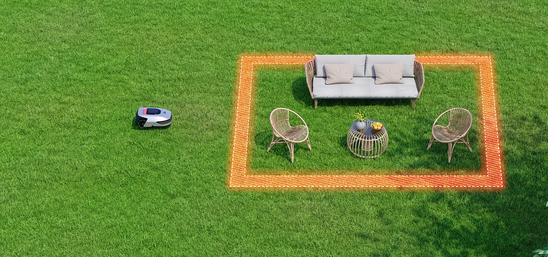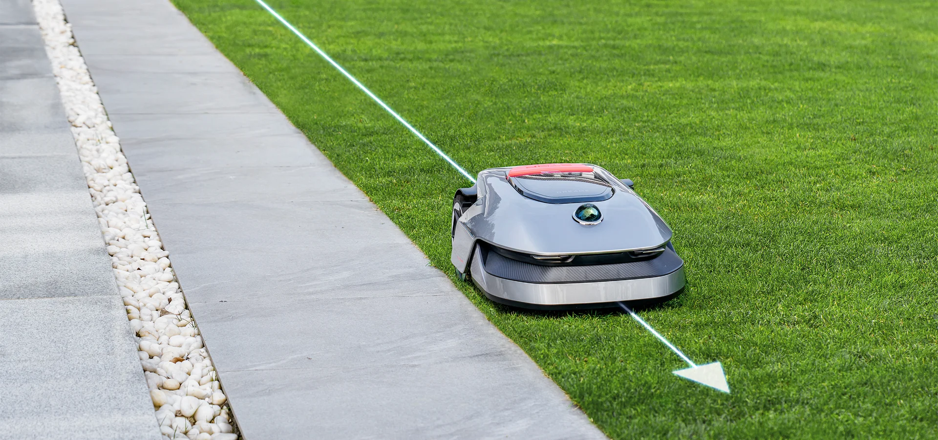 Gracias a la tecnología de datos en la nube de puntos en 3D y a los avanzados algoritmos de IA, A1 identifica y sortea los obstáculos de manera inteligente dentro de los límites establecidos para cortar el césped de forma segura y controlada.