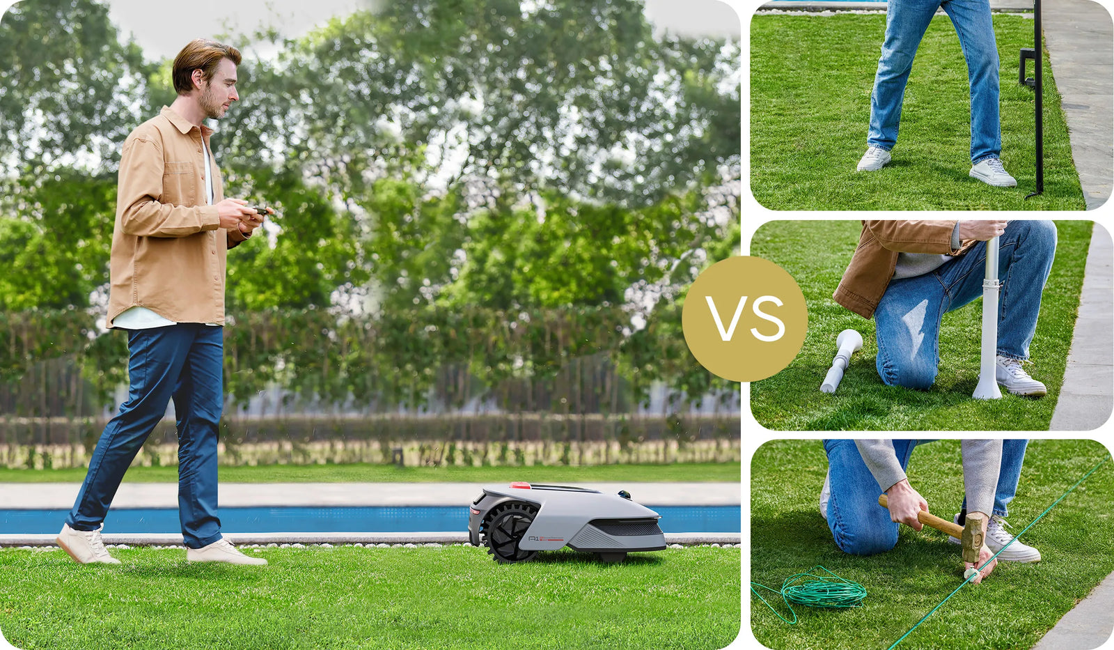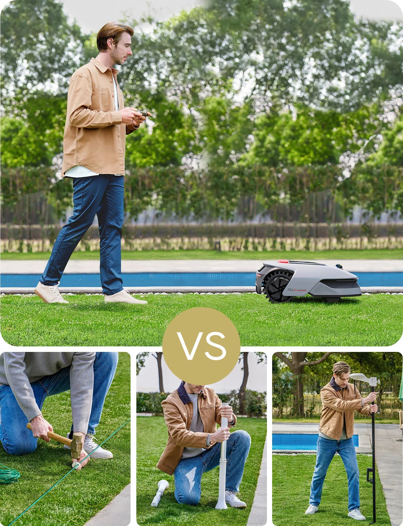 6. Cobertura de bordes sin problemas: Se aplica solo a los límites sin diferencias de altura. Asegúrate de que el límite por el que camina el cortacésped esté al nivel del césped y sin escalones o huecos para un cuidado más fácil del césped.