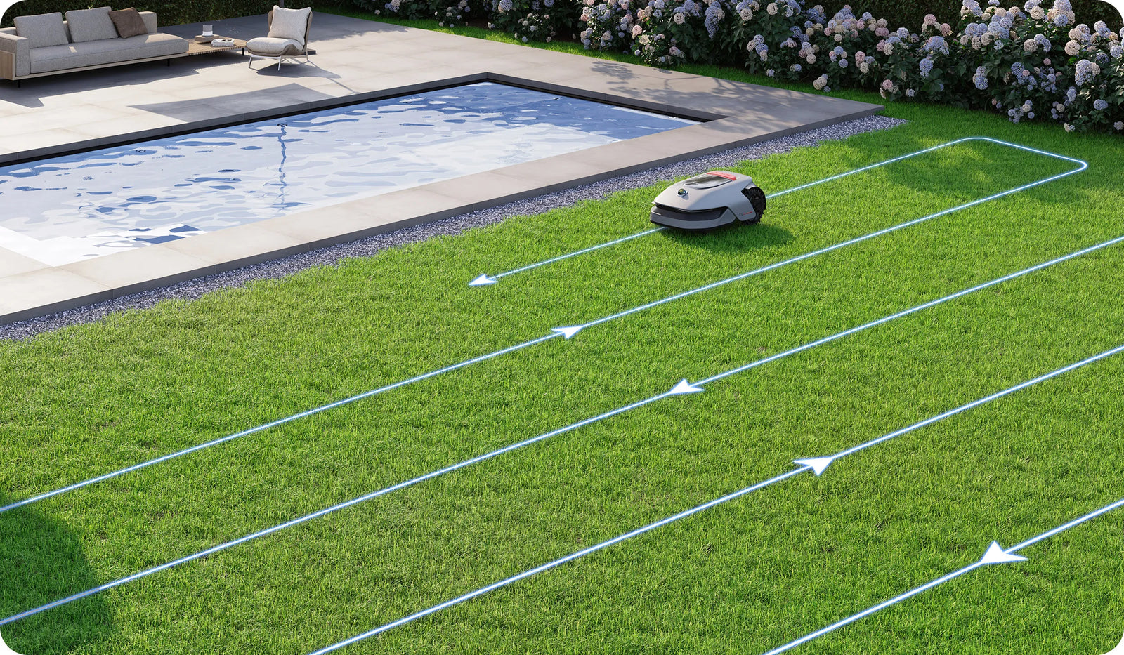 A1 Pro funciona en una innovadora ruta en forma de U que cubre completamente el césped para ofrecer una uniformidad y una calidad de corte impresionantes. Podrás cubrir amplios jardines de hasta 1000 m² en solo 24 horas.5