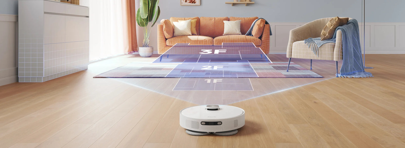 Con la navegación LiDAR mejorada y un algoritmo SLAM avanzado, L10 Prime genera rápidamente un mapa 3D para limpiar y navegar por tu hogar de forma experta. La posibilidad de guardar 3 mapas de planta independientes permite a L10 Prime ofrecer una limpieza extraordinaria en toda la casa y lo hace fantástico para casas de varias plantas.