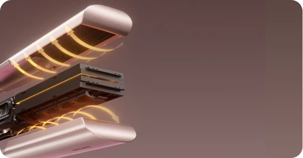 *Según pruebas internas, en comparación con planchas convencionales. Los resultados pueden variar según el tipo de cabello y las condiciones de uso.