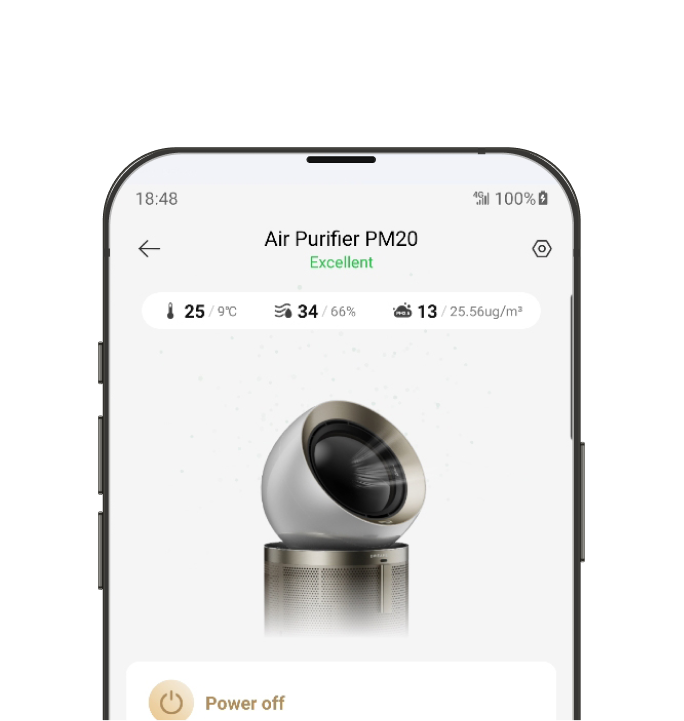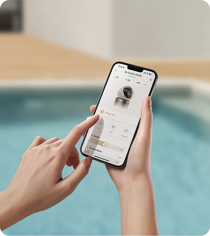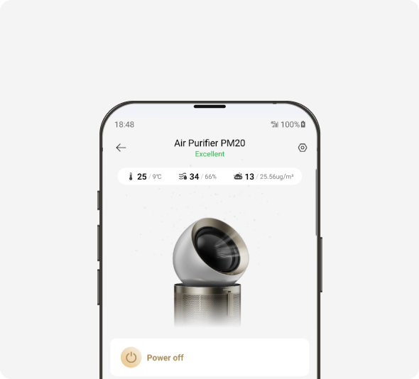 Controla el purificador de aire Dreame sin esfuerzo con la intuitiva app de Dreame. Configura temporizadores, monitoriza contaminantes del aire y gestiona el purificador con órdenes por voz sin conexión a internet o a distancia con la app cuando estés fuera, para disfrutar de una auténtica experiencia manos libres.