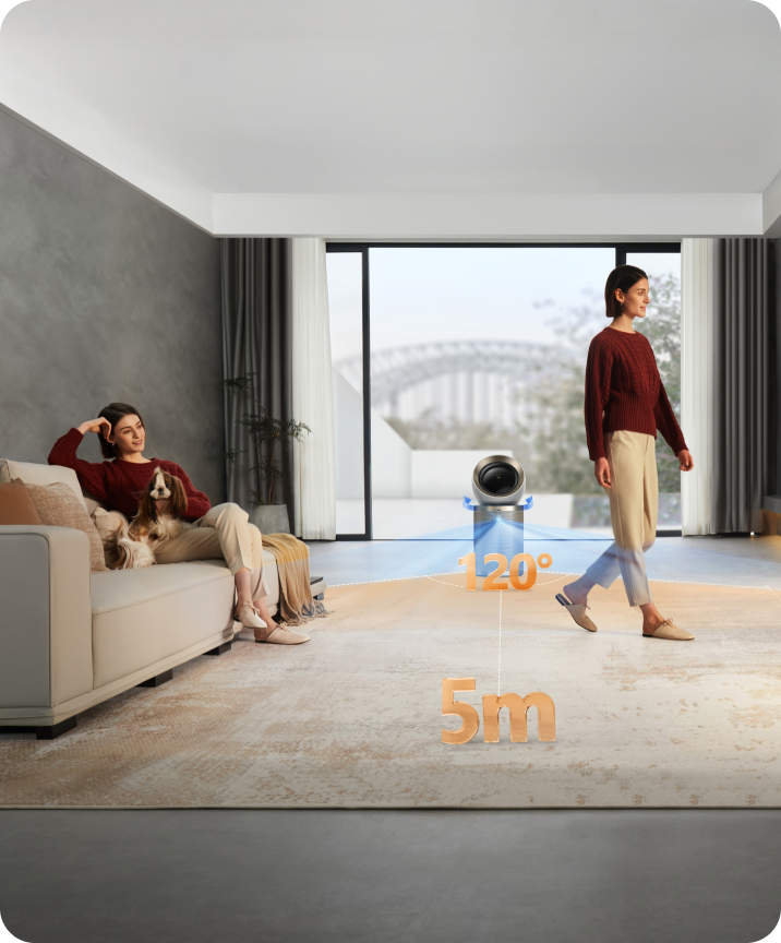 Experimenta un flujo de aire ajustable, adecuado para todos de la casa. Con una persona, el aire sigue su posición. Con más de una, fluye intuitivamente de lado a lado, consiguiendo una cobertura de aire equilibrada y mejorada.