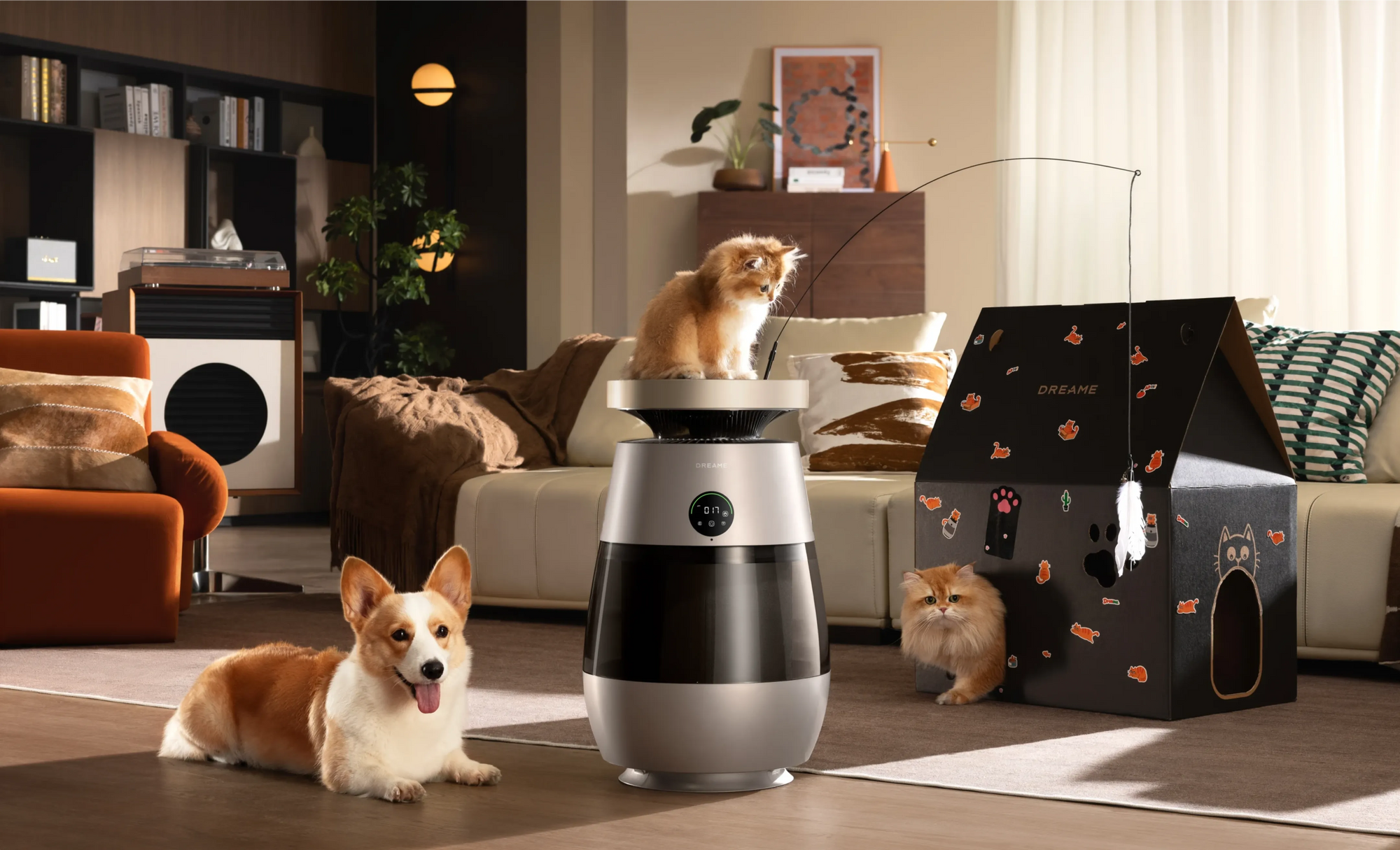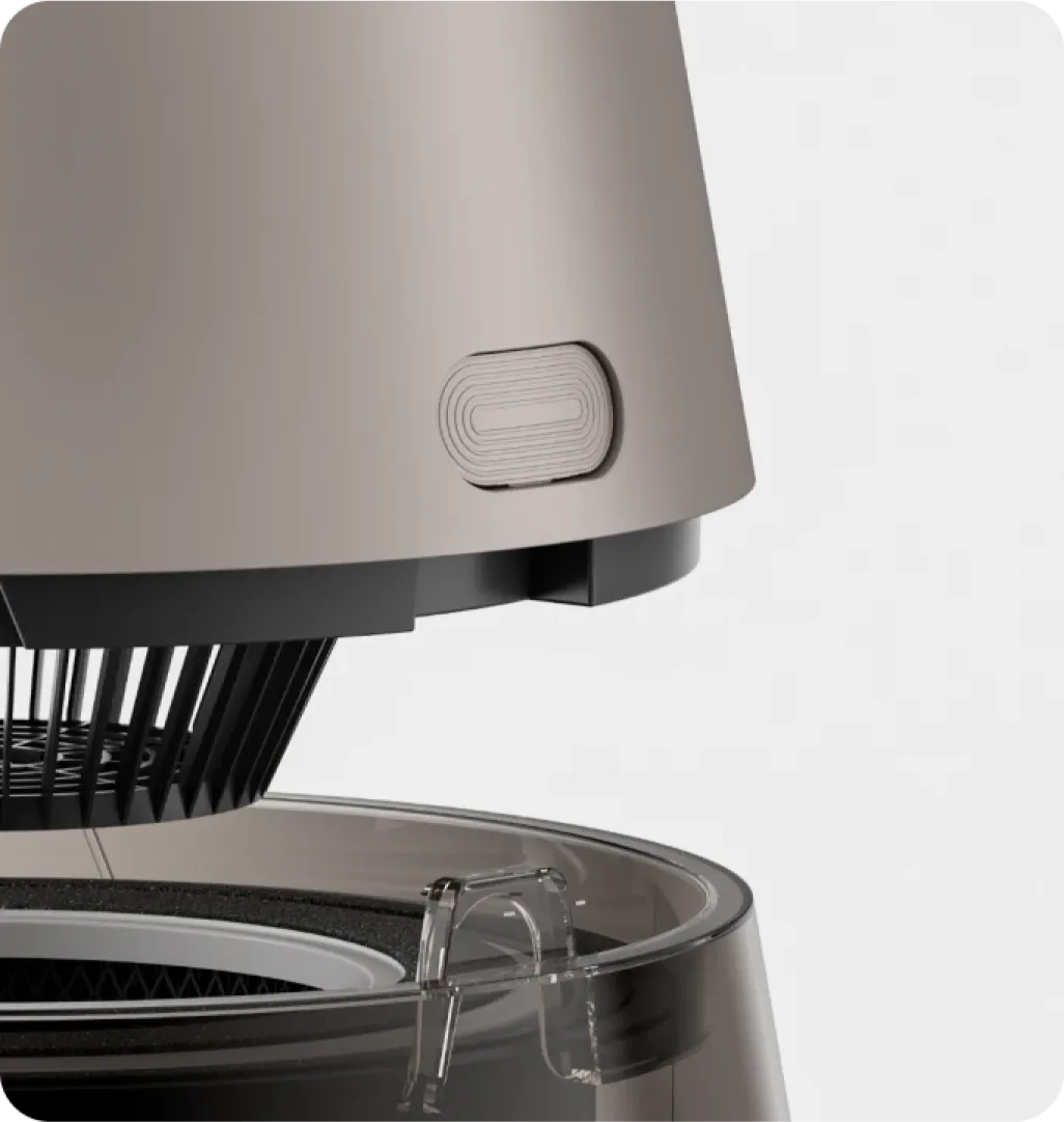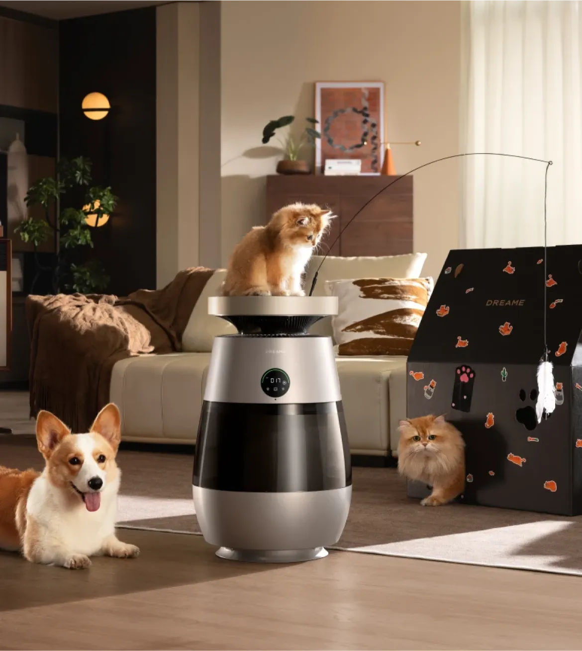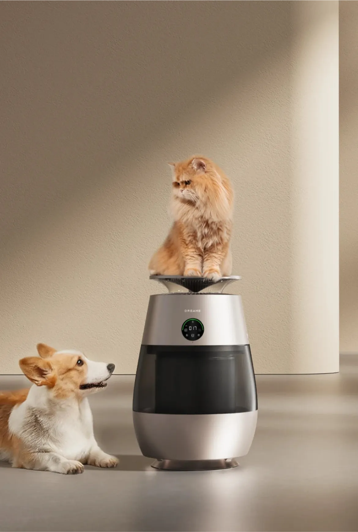 *99.9%: The experiment was conducted in a third-party laboratory. The prototype unit was placed in a 3m³ test chamber and set to pet mode. During testing, it was observed that after the unit was turned on, pet hair was captured onto the filter, with a capture rate of 99.9%. Data tested by third-party laboratory.Report No.FZCS-250905LW-01;