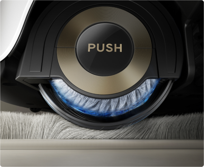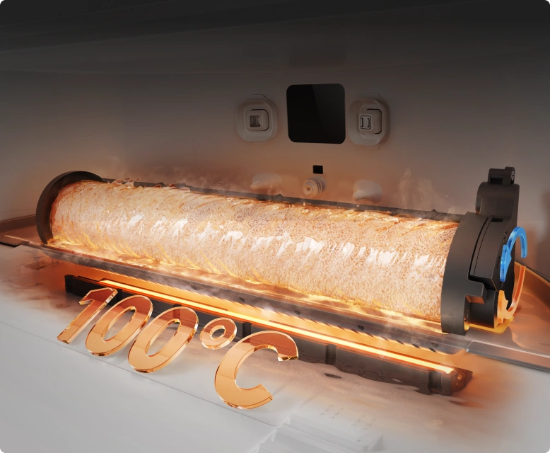 Después de limpiar, el aspirador se da a sí mismo un "baño caliente" mediante su tecnología de autolimpieza del rodillo a 100 °C* ThermoHub™, girando adelante y atrás en la estación base para eliminar las manchas difíciles y neutralizar olores en la mopa de rodillo.