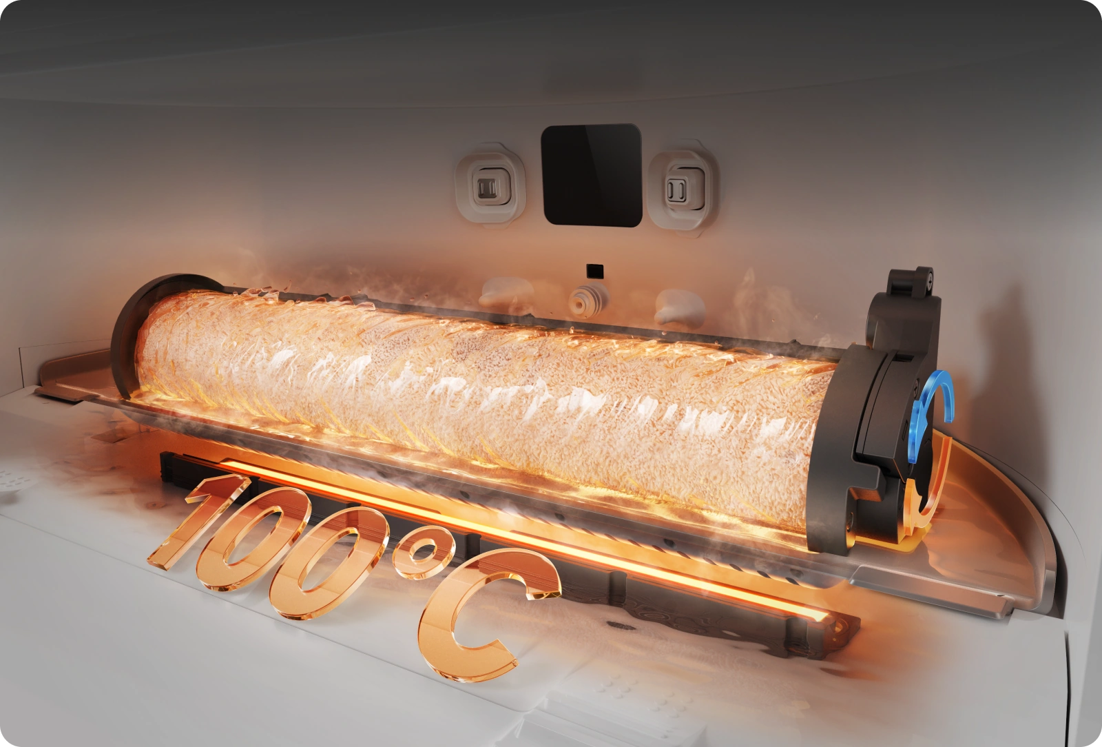 Caliente, pero sin quemar Tras la rutina de autolimpieza a 100 °C, la temperatura del sistema PTC de la placa de lavado baja hasta un nivel que garantiza la seguridad para toda la familia.