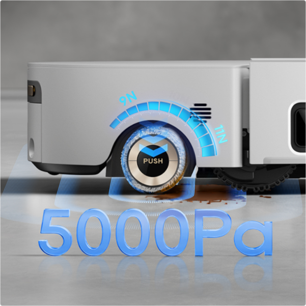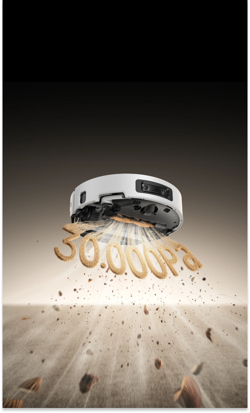 Con una succión Vormax™ de 30.000 Pa* ajustable y líder en el sector impulsada por el motor TurboForce, el robot aspirador elimina la suciedad con facilidad, lo que proporciona una recogida del 100%* de partículas y una eliminación del 99%* del pelo con un bajo nivel de ruido.
