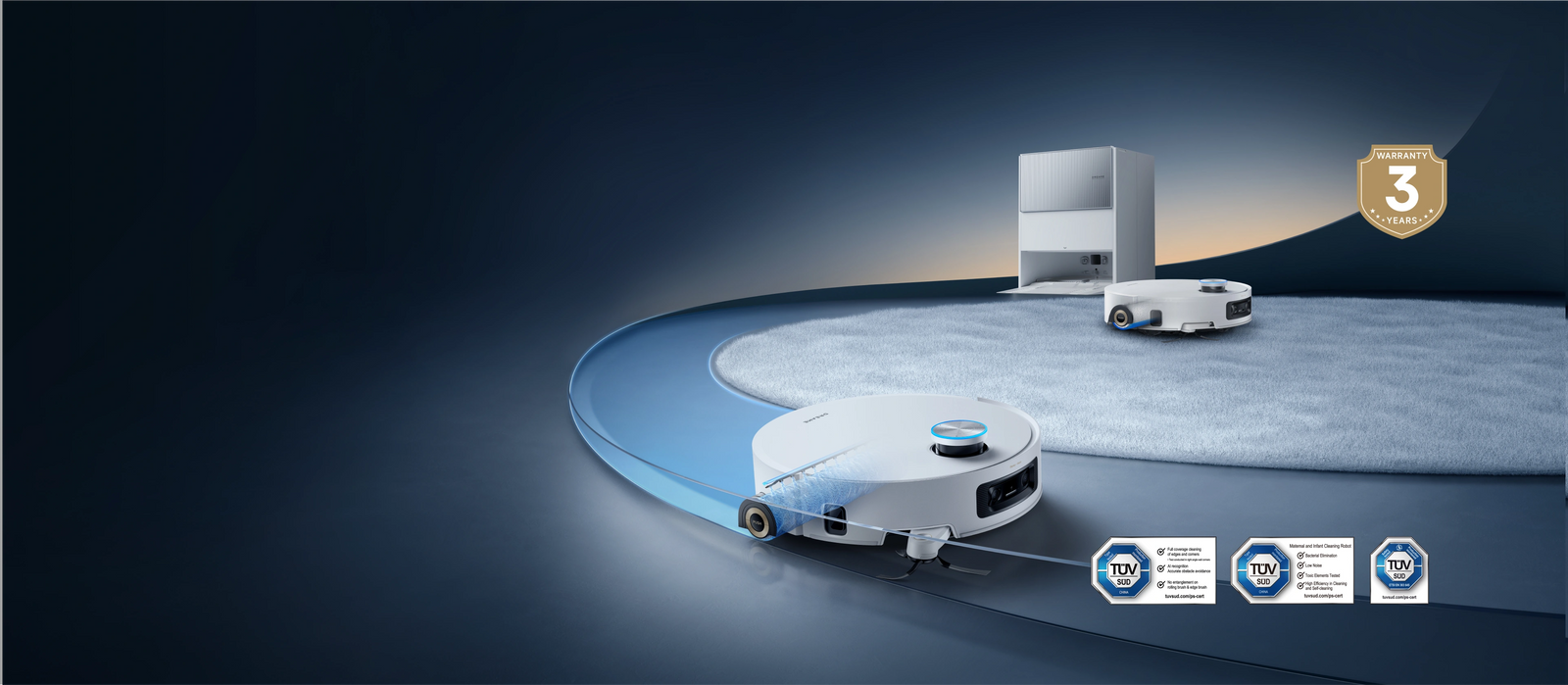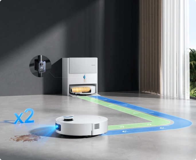 El sistema OmniSight™ 2.0 permite navegar con precisión y esquivar obstáculos mediante dos cámaras 3D de alta resolución inspiradas en el ojo humano, con gran angular de 160°, a la vez que integra un sensor LDS retráctil de 360° para ofrecer una solución todo en uno para mapear, localizar, navegar y esquivar obstáculos.