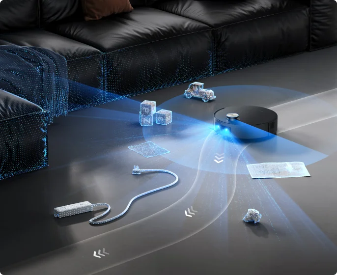 La tecnología de esquivación de obstáculos StereoEdge™ del aspirador usa la luz estructurada 3D para esquivar fácilmente cables desperdigados por el suelo o muebles de forma irregular, utilizando datos de nube de puntos láser para identificar obstáculos a hasta 10 cm* de distancia, lo que reduce los puntos ciegos.