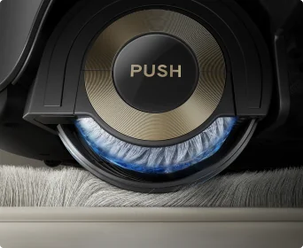 Después de limpiar, el aspirador se da a sí mismo un "baño caliente" mediante su tecnología de autolimpieza del rodillo a 100 °C* ThermoHub™, girando adelante y atrás en la estación base para eliminar las manchas difíciles y neutralizar olores en la mopa de rodillo.