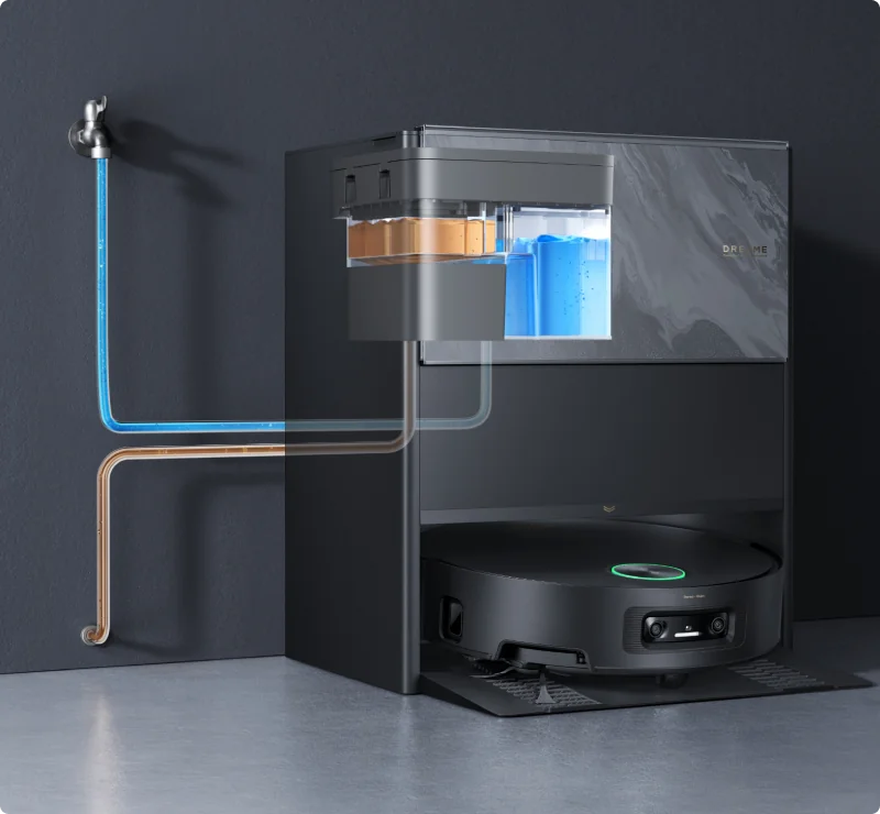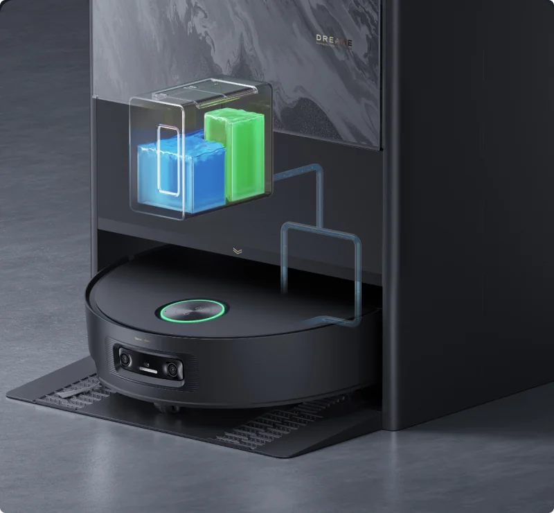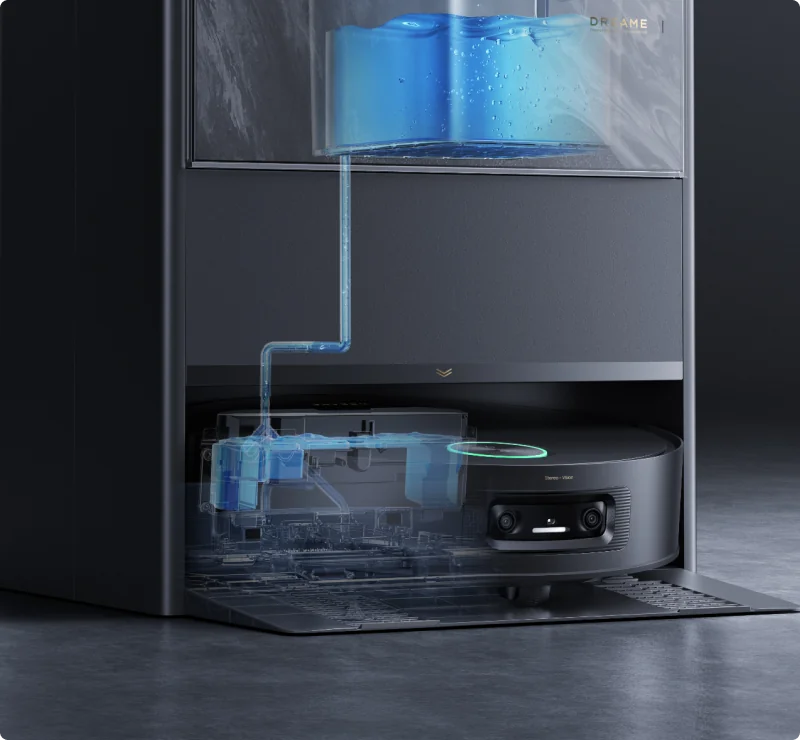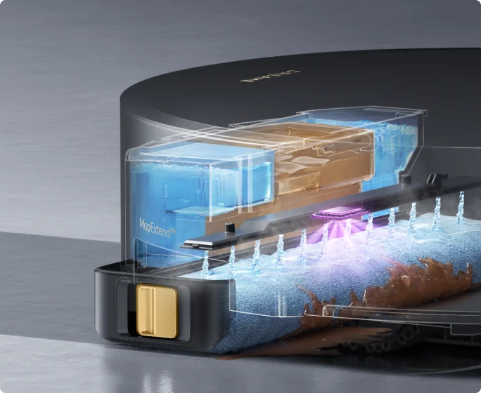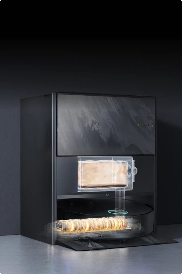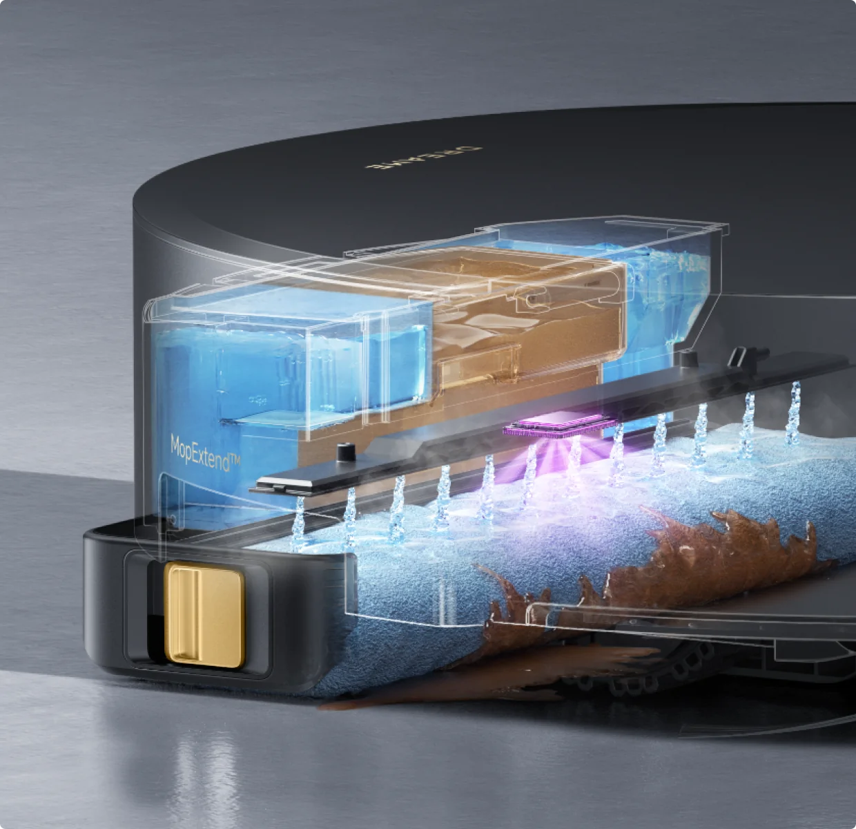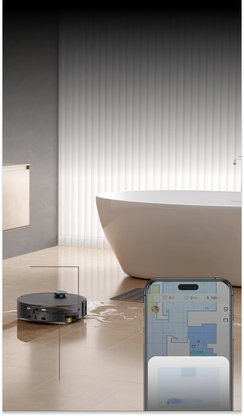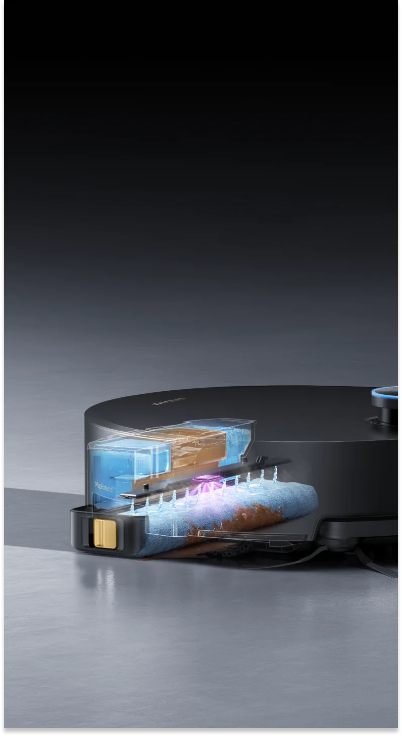 Dreame Aqua10 Ultra Track Complete, el primer robot aspirador del mundo con mopa a tracción que supera obstáculos de 6 cm. Rocía agua caliente continuamente, frota las manchas y recoge el agua sucia en tiempo real para conseguir lo que nuestros modelos anteriores no podían. Con su incomparable capacidad de superar obstáculos de 6 cm, este robot aspirador llega más allá de lo imposible, para ofrecer una auténtica experiencia de limpieza con manos libres.