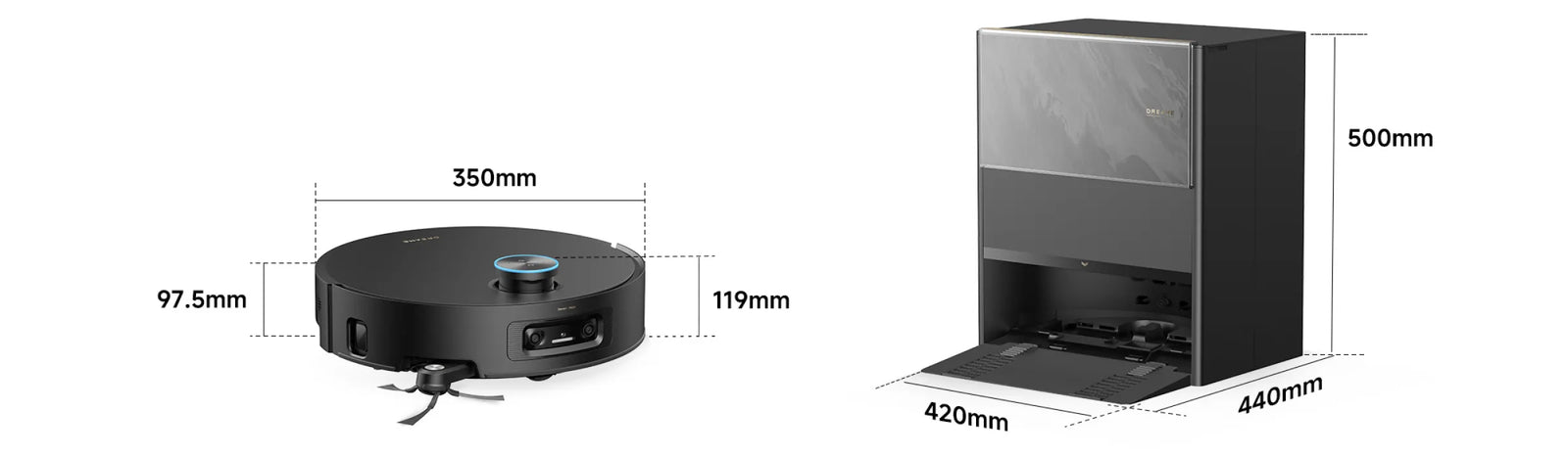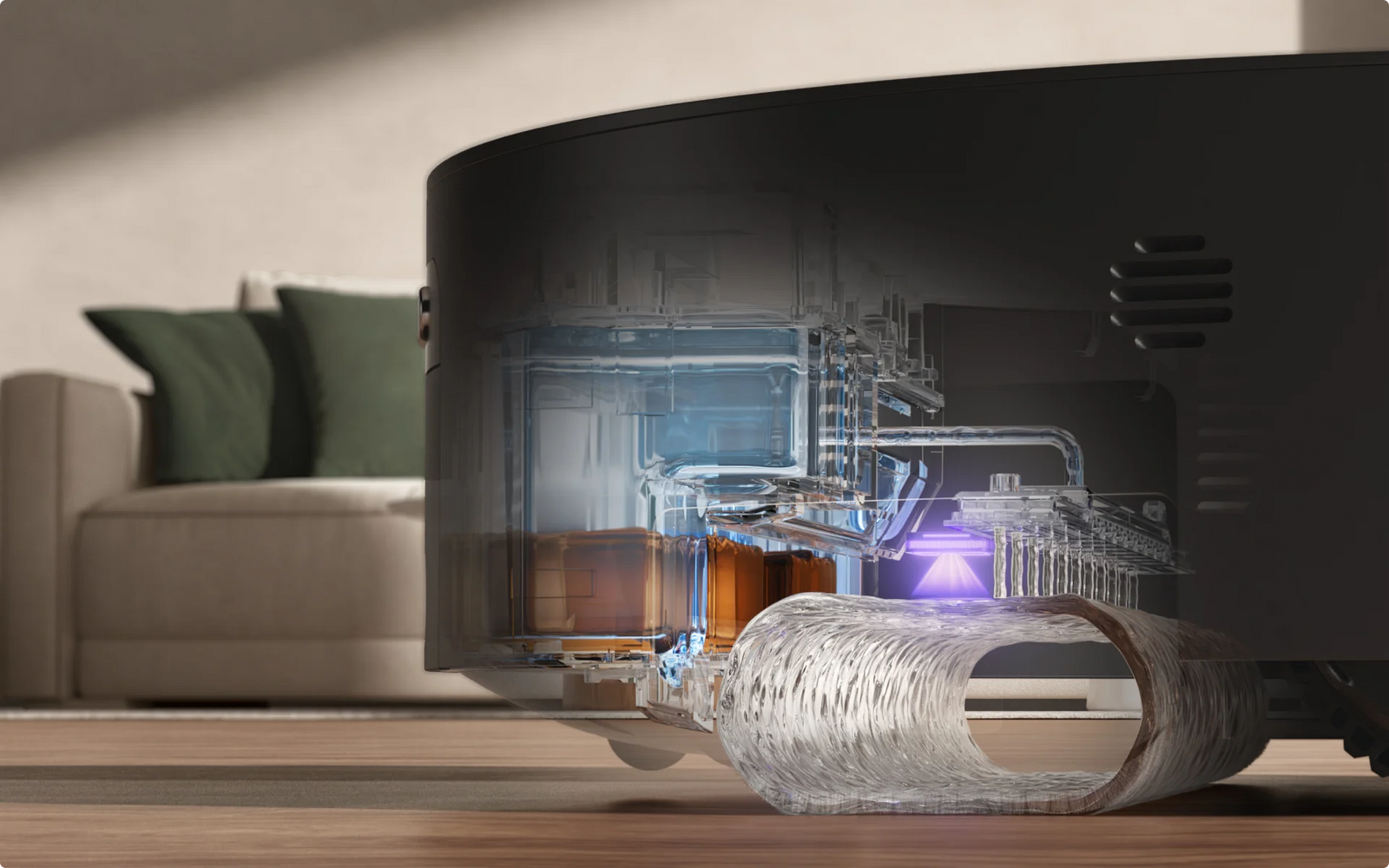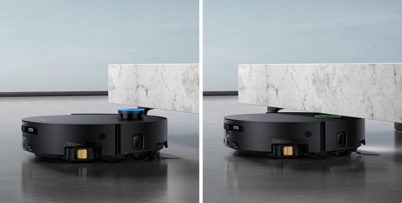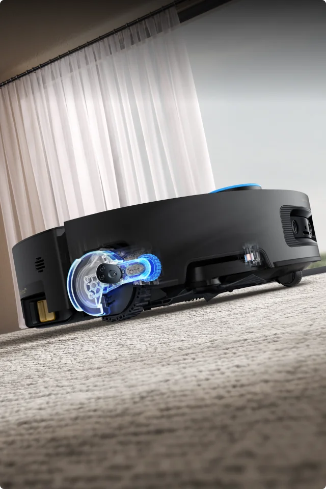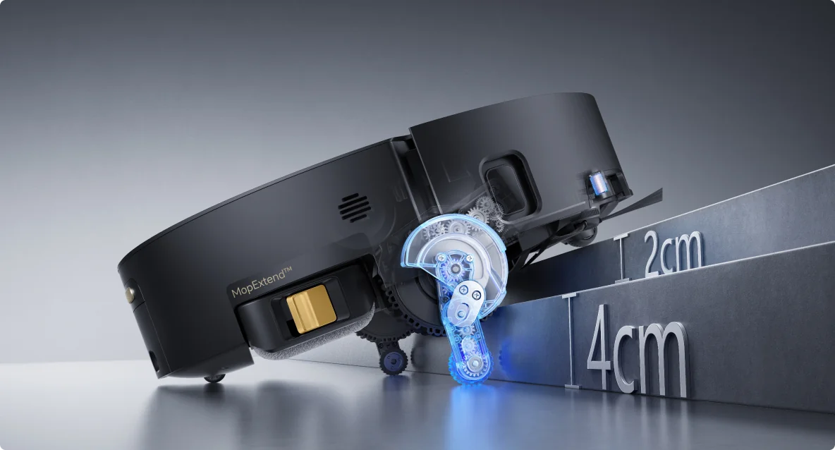 *Las primeras patas robóticas retráctiles del mundo: Frost & Sullivan lo confirmó basándose en la investigación del mercado global de robots aspiradores. Las patas robóticas retráctiles son un sistema de brazo oscilante con doble articulación que simula el movimiento coordinado de los muslos y los gemelos de las personas, lo que permite al robot superar obstáculos fácilmente. El estudio se completó en diciembre de 2024.
