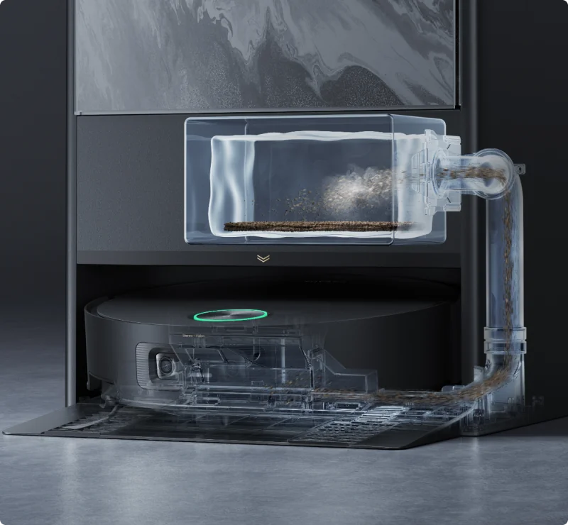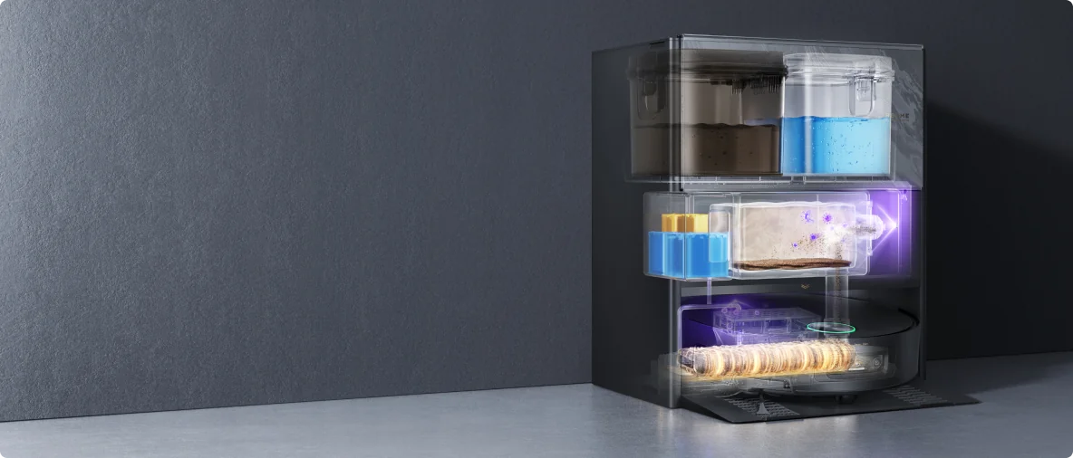 Activa el fregado en seco sin contaminación cruzada para el cepillo lateral ni la bolsa de polvo a través del control directo por voz o de la app de limpieza*.