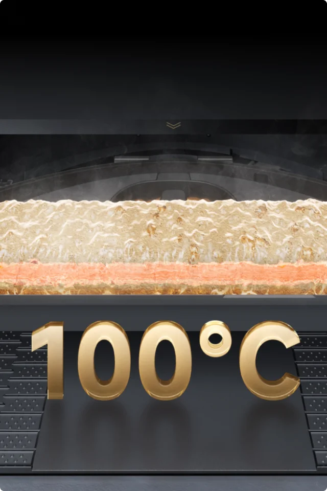 *45 °C: Las temperaturas del agua de las boquillas del robot aspirador se encuentran en un rango constante de 35-45 °C tras 4 min de limpieza, con un pico de 45 °C (45 °C no se refiere a la temperatura de la mopa). *≈3 veces mayor: En comparación con nuestros modelos con mopa vibratoria anteriores.
