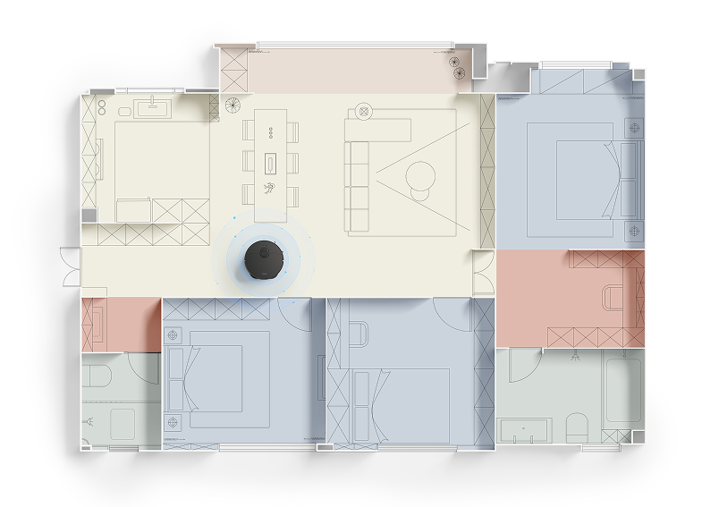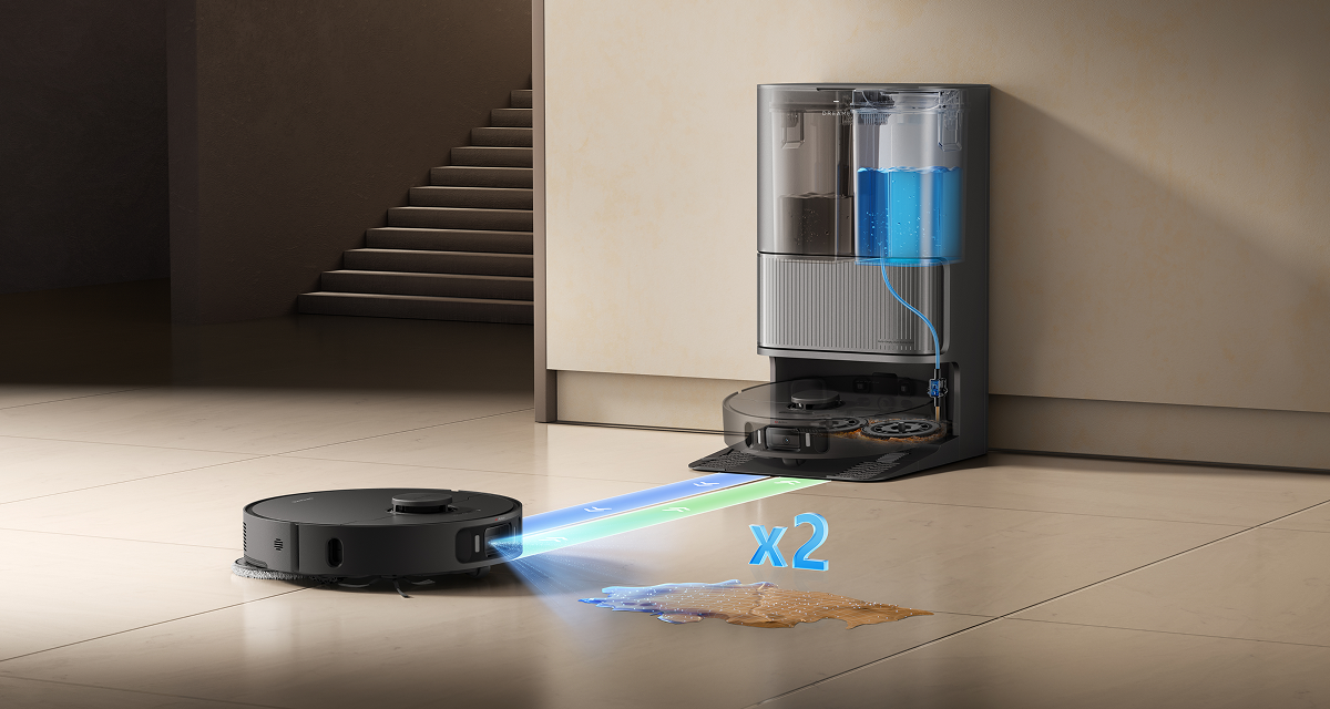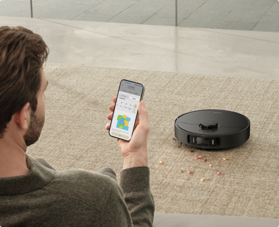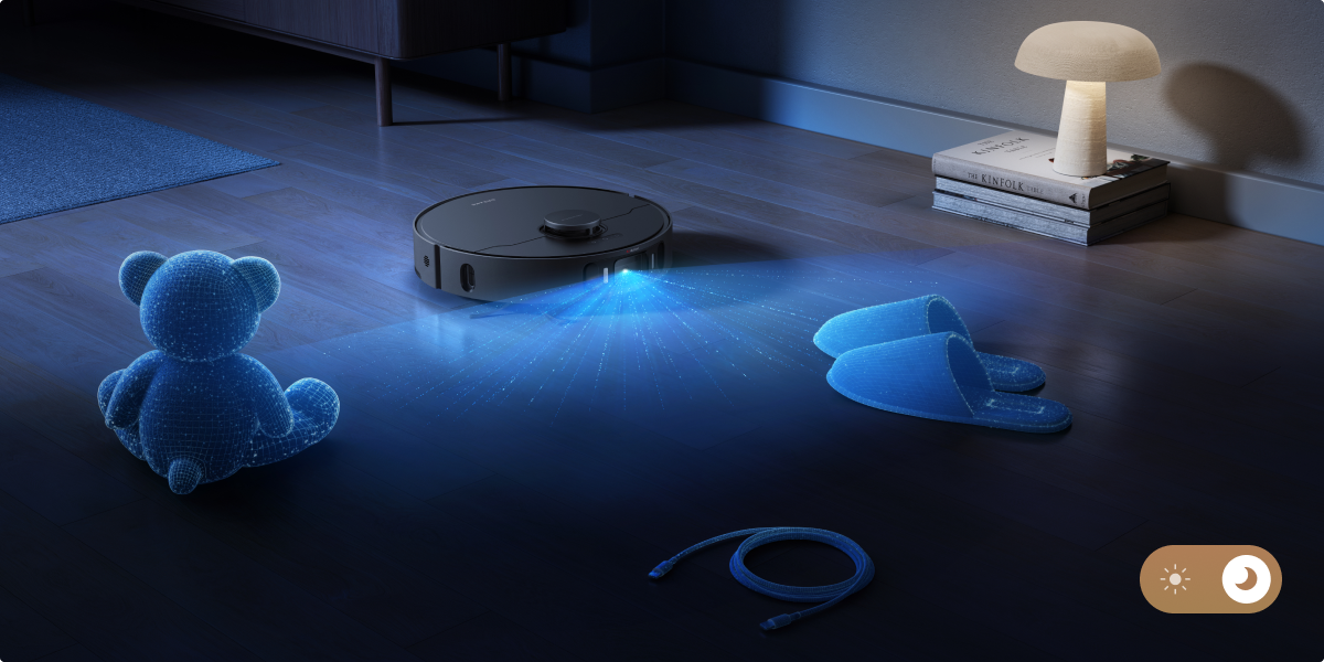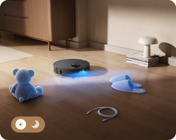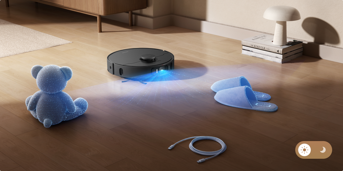 Con Acción por IA y Luz estructurada 3D, el robot aspirador se mueve de forma flexible por tu hogar, se adapta a tu espacio y esquiva muchos obstáculos, como zapatos, juguetes, etc., para navegar sin golpearlos.