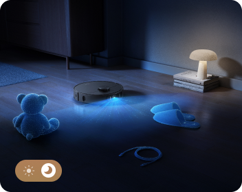 La luz LED guía al robot aspirador por zonas oscuras y la cámara detecta obstáculos, lo que le permite maniobrar de forma rápida y efectiva por espacios bien iluminados y rincones oscuros de tu hogar.