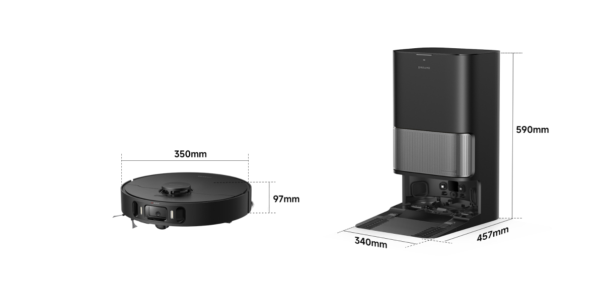 *Elevación de mopas de 10,5 mm: la diferencia de altura del robot aspirador es de 10,5 mm antes y después de la elevación de mopas. Para alfombras con pelo de más de 3 mm, recomendamos configurar el robot aspirador para evitar alfombras de pelo medio y largo en la aplicación Dreamehome para así evitar que se mojen.