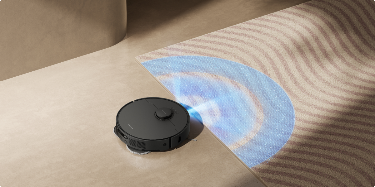El L40 Ultra AE cuenta con una función de reconocimiento ultrasónico de alfombras. Permite detectar automáticamente alfombras y limpiarlas o esquivarlas en función de los ajustes de la aplicación Dreamehome.