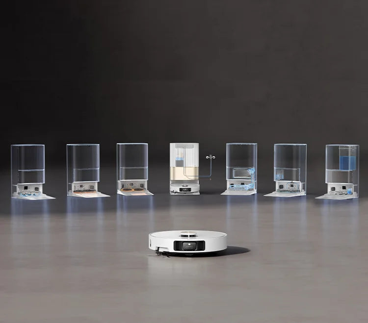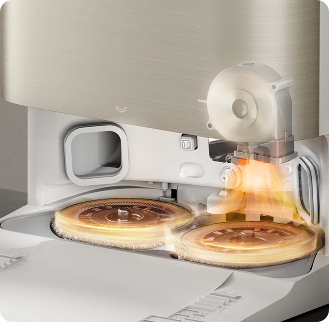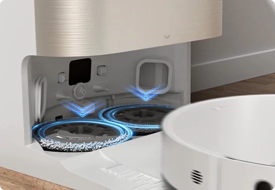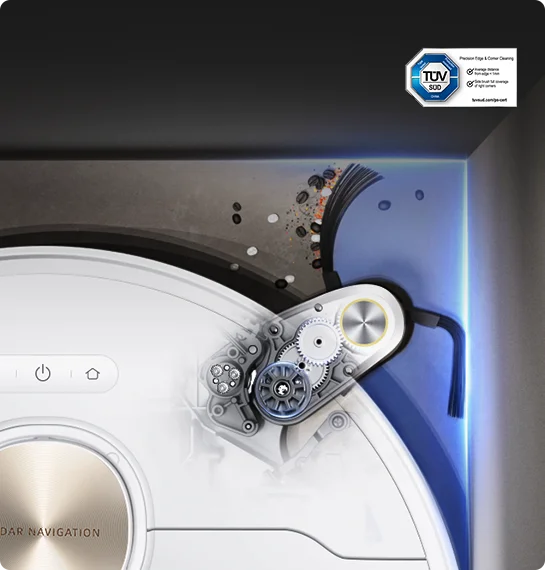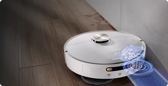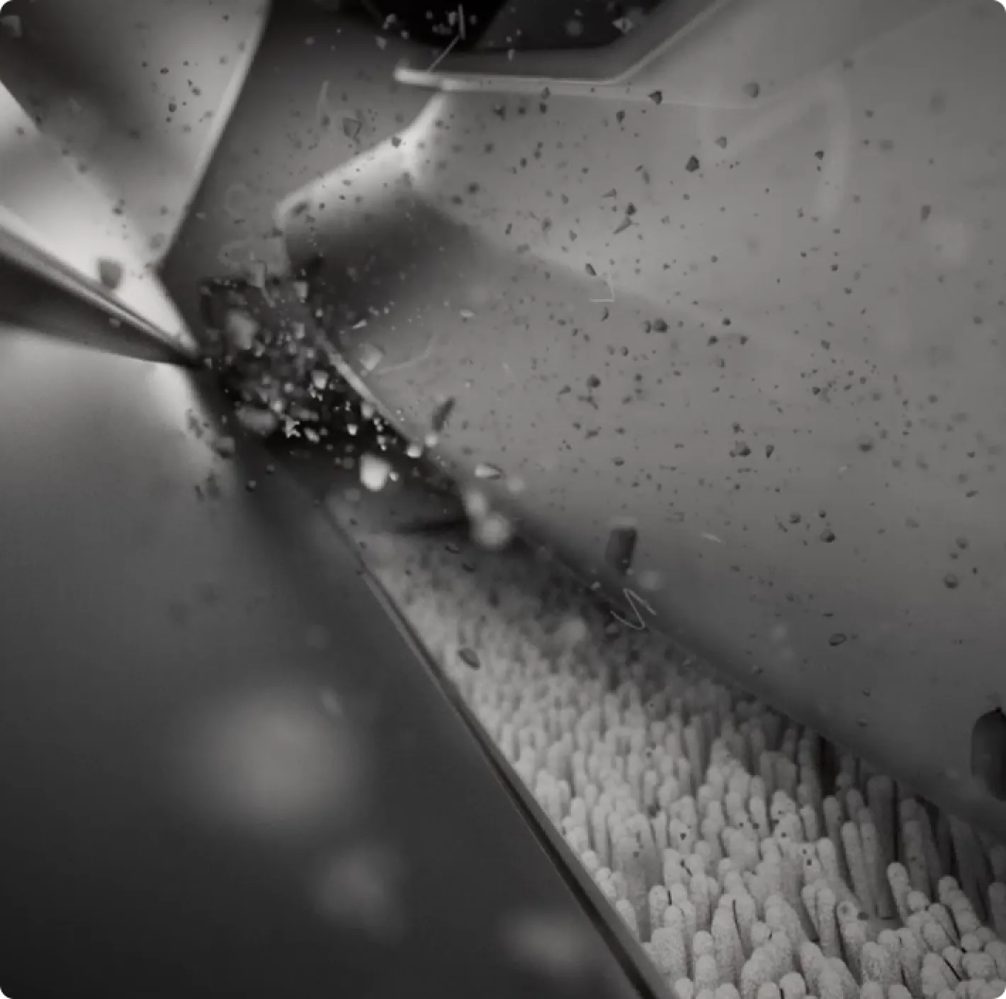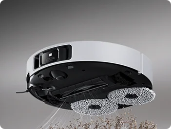 El cepillo lateral elevable del robot X40 Ultra Complete se mueve más de 10 mm* hacia arriba y hacia abajo en sincronía con la mopa y el cepillo principal, para separar de forma eficiente la limpieza en seco de la húmeda.