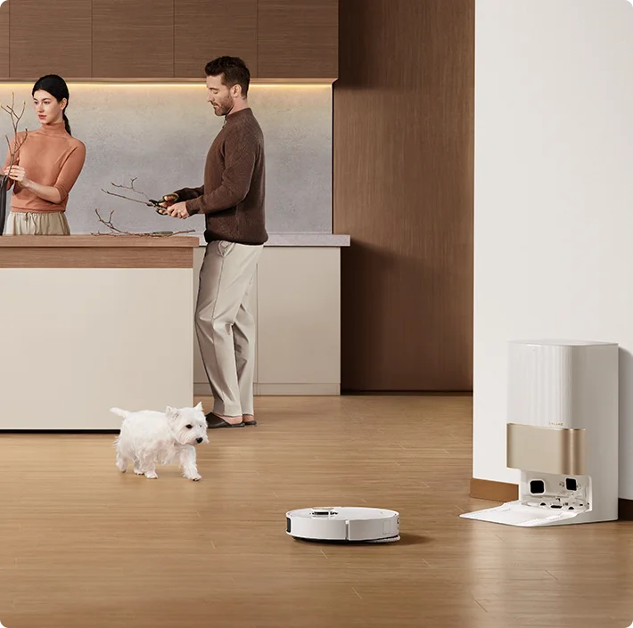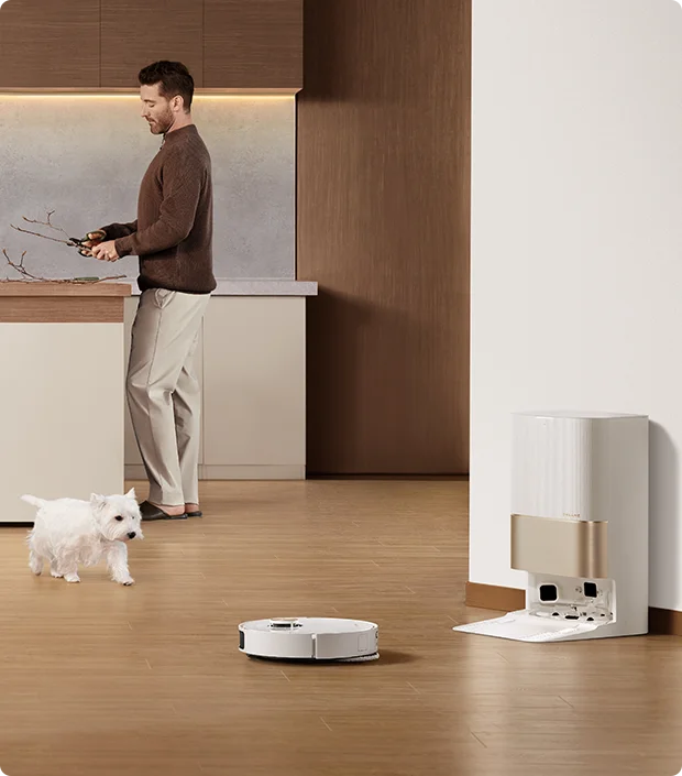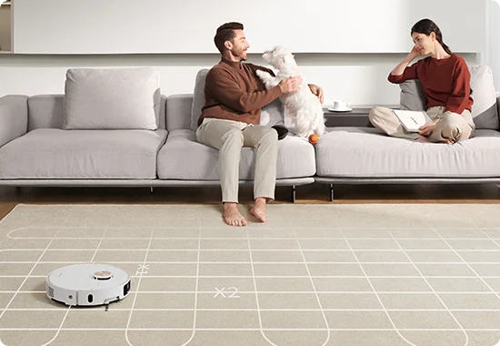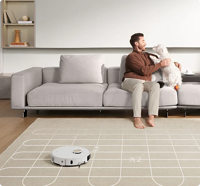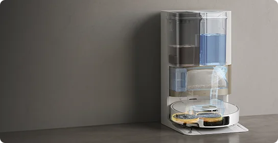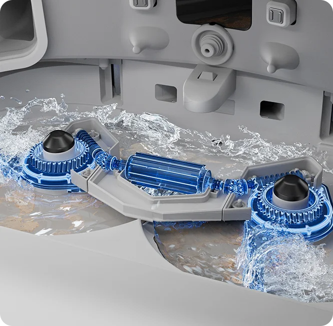 El X40 Ultra Complete detecta la suciedad y ajusta su método de limpieza en consecuencia, desde la limpieza intensiva del polvo hasta la eliminación de manchas difíciles como la salsa de soja. Con un cepillo lateral elevable para evitar la propagación de contaminantes, el aspirador garantiza un fregado minucioso y preciso a una velocidad más lenta*.