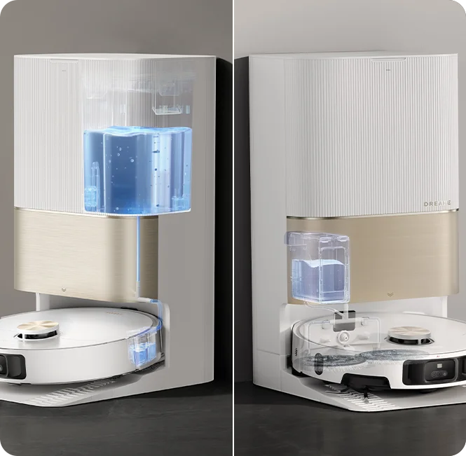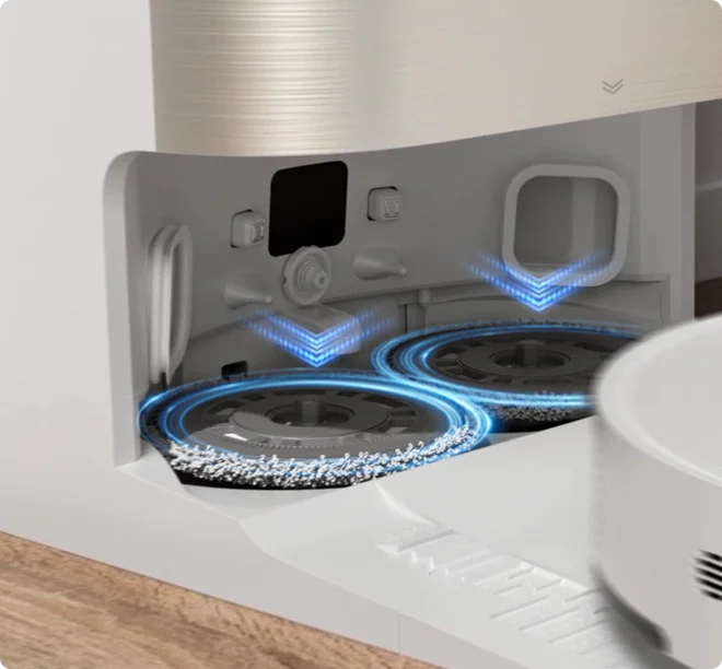 12. Doble lavado de mopa y fregado de suelos: disponible cuando el usuario configura esta función en el modo CleanGenius™ de la aplicación Dreamehome.