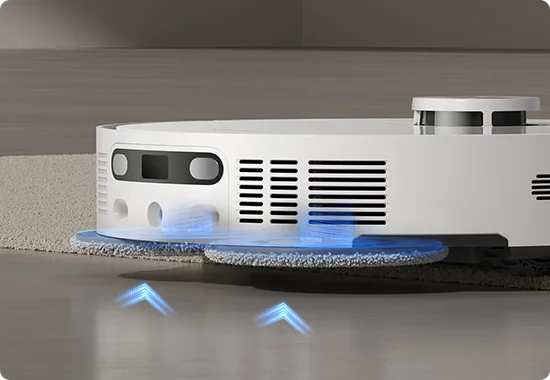 2. 10,5 mm: la diferencia de altura del robot aspirador es de 10,5 mm antes y después de elevar la mopa. En el caso de alfombras con pelo de más de 3 mm de largo, te recomendamos que configures el robot aspirador para evitar alfombras de pelo medio y largo a través de la aplicación Dreamehome para así protegerlas de la humedad.