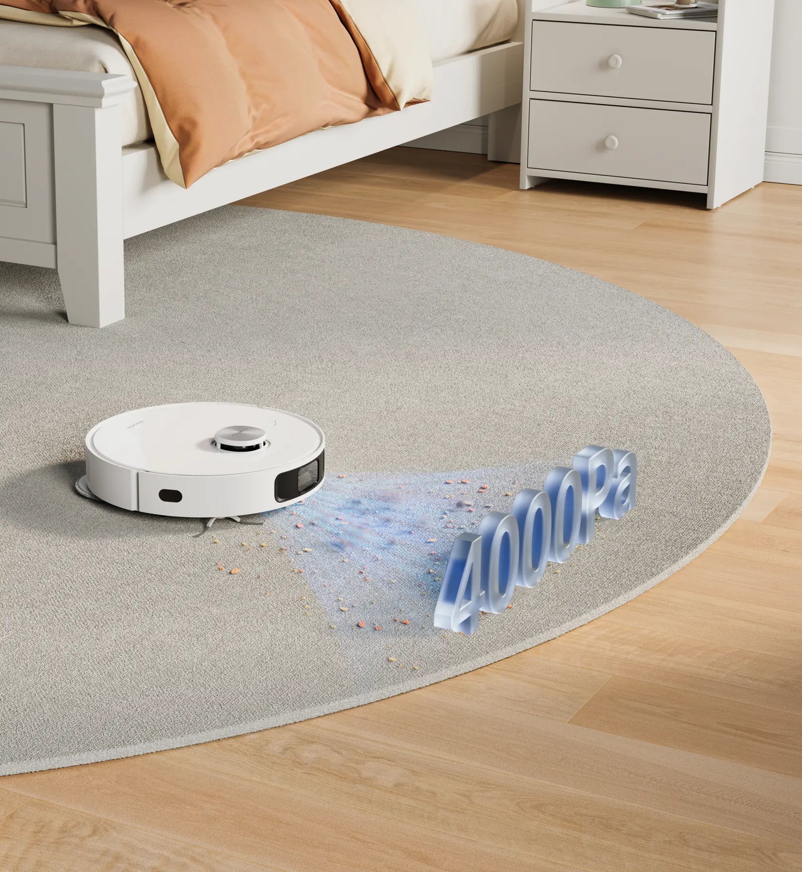La potente succión de 4000 Pa y el cepillo de goma sin cerdas se combinan para eliminar el pelo, la suciedad, el polvo y los residuos de alfombras, suelos, rincones y rendijas. El cepillo giratorio levanta el polvo incrustado en el interior de la alfombra y está diseñado para evitar que el pelo se enrede y garantizar una limpieza profunda de tu hogar.