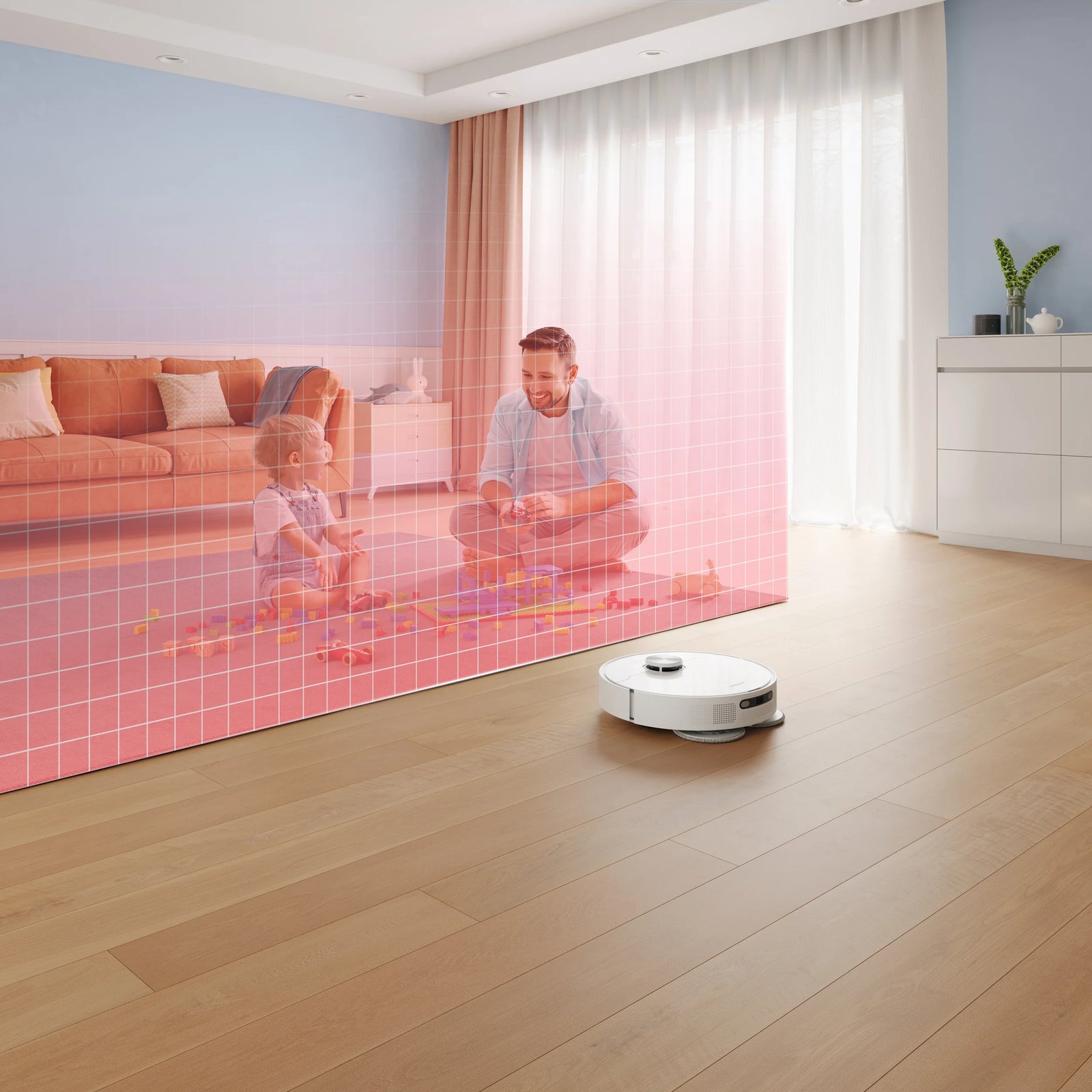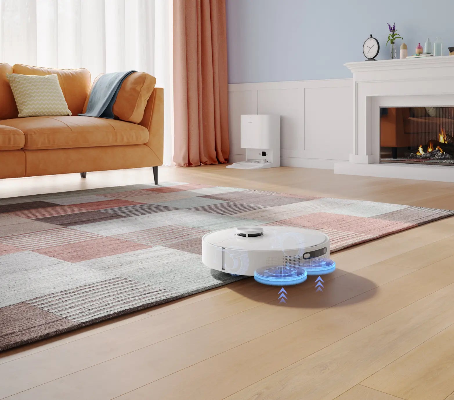 La detección ultrasónica avanzada de alfombras permite a L10 Prime identificar alfombras y elevar sus mopas hasta 7 mm* para mantener las alfombras en buen estado y secas.